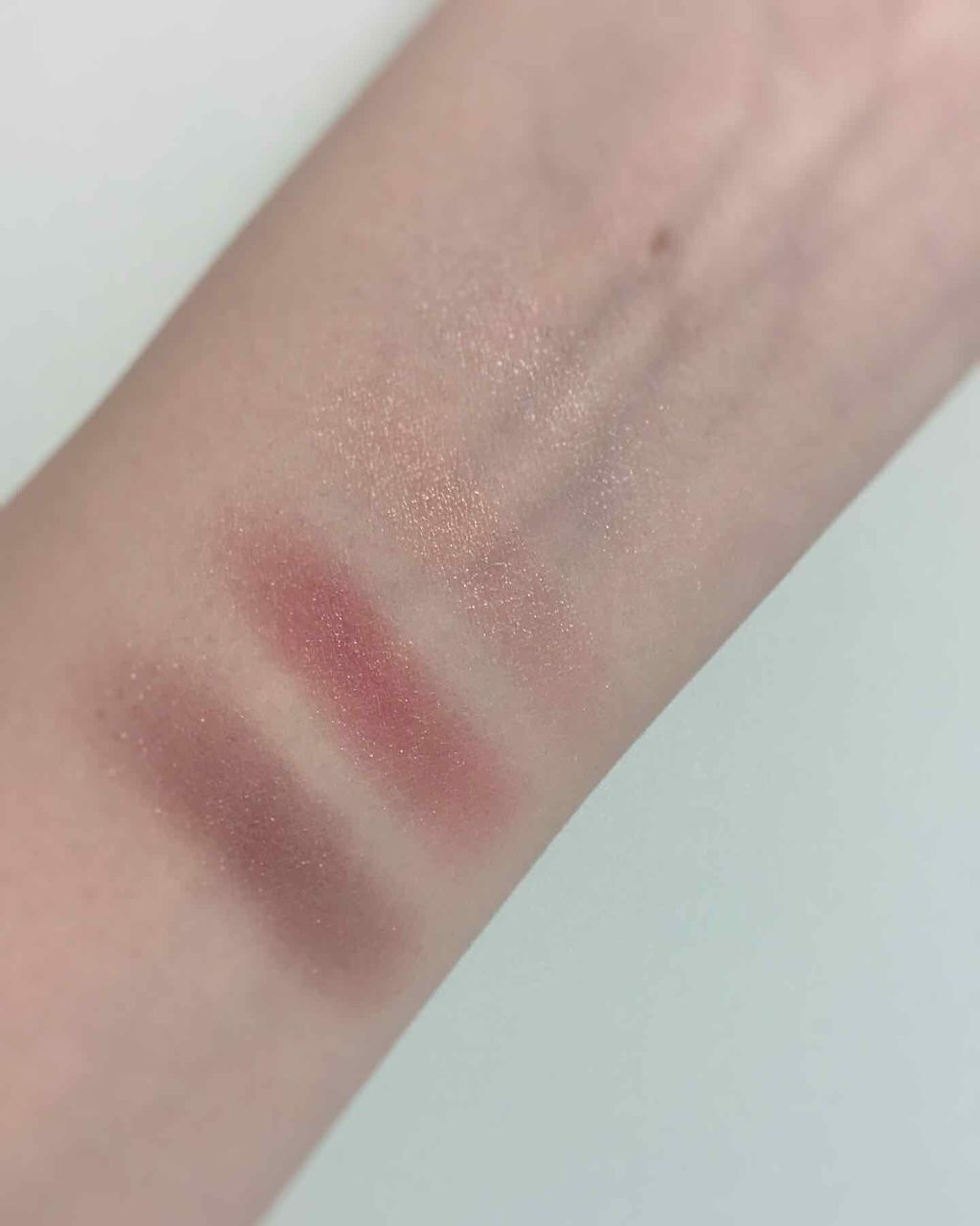 高輝度偏光パール&大粒グリッターがたっぷり配合されており、まばたきするたびキラキラ輝く目元に仕上がります♡ PK-4 #あざとい目配せ は青みピンク〜レッド系カラーで目元に甘さをのせた、かわいい目元に☺️ しっとり密着する粉質なので、ラメ飛びしにくくまぶたにのせるとほどよい透け感があるため失敗しにくいアイシャドウだと思いました。