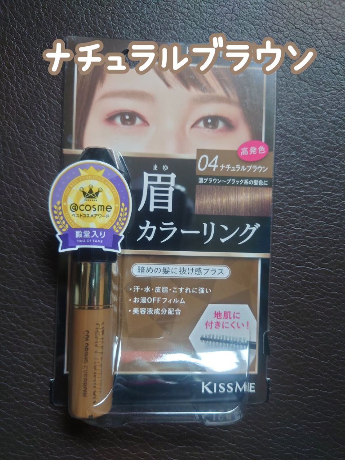 - 瞬時に『ナチュ眉』 ヘアに合わせて明るくチェンジ! ■ひと塗りでしっかり発色 眉毛の黒色をしっかりカバーし、きれいに発色します。 一度塗りでもしっかりと色が付き、重ねて塗るとさらに発色が良くなります。 ■地肌に付きにくく、簡単に塗ることができる、テクニカルブラシ採用 地肌につきにくいコンパクトサイズのテクニカルブラシを採用しています。 ムラになりにくく、誰でも簡単に塗ることができます。 ■どんな髪色にも対応できるカラーバリエーション 眉色を髪色に合わせたり、色味をおさえて明るくするだけで、自然でふんわりとした雰囲気に仕上がります。さらに、アイメイクを引き立て目を大きく見せます。 ■長時間落ちにくいのに、お湯で簡単オフ 汗・水・皮脂・こすれに強く、長時間落ちにくい処方です。 フィルムタイプなので、ぬるま湯でスルッと簡単に落とせます。 ■パンテノール(眉毛保護成分)配合 水溶性のビタミンで、肌に潤いと弾力を与えます。眉毛にツヤ・ハリを与えます。