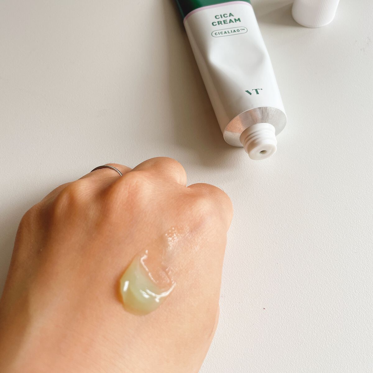 - やさしい使い心地の低刺激シカクリーム。VT独自成分のシカリオ™*配合! 肌に十分な保湿感を与え、乾燥を防ぎしっとりもちもち肌に。 クリームなのに軽くてしっとりしたテクスチャーでベタつき感やテカリが気にならない! つけた瞬間肌にスッとなじみ豊富な水分感が感じられます。 *ツボクサエキス、センテラ4Xコンプレックス(アシアチン酸、マデカッソシド、マデカシン酸、アシアチコシド):すべて整肌成分