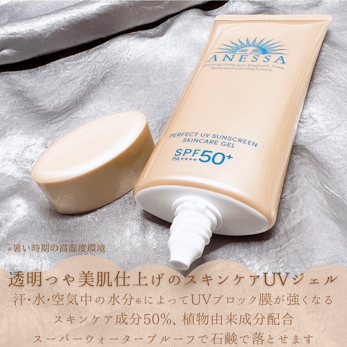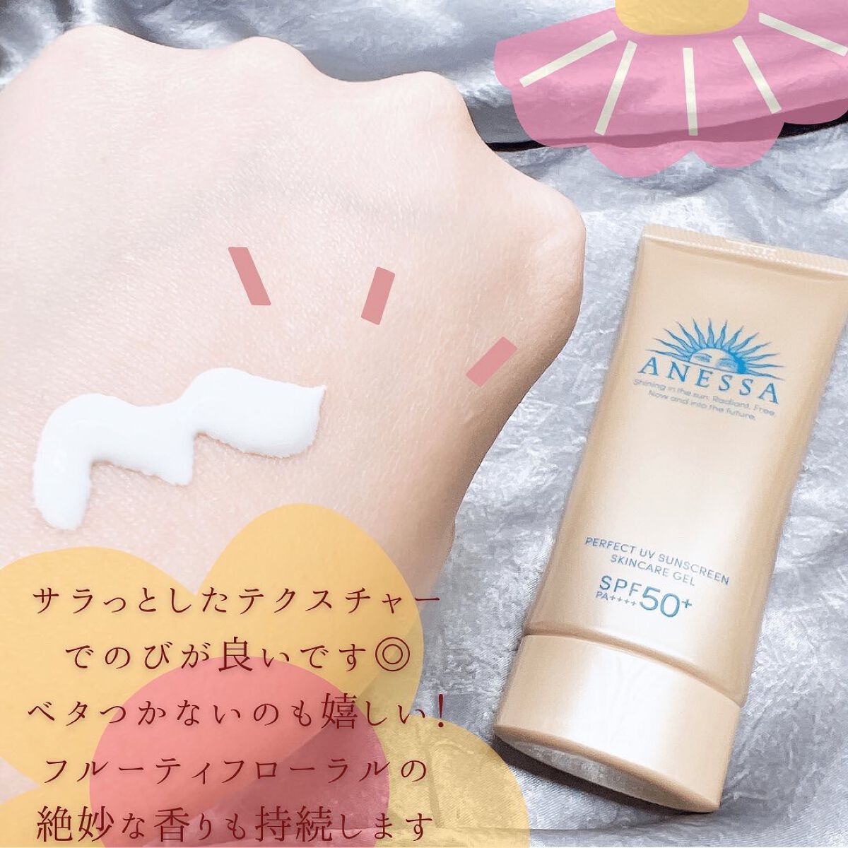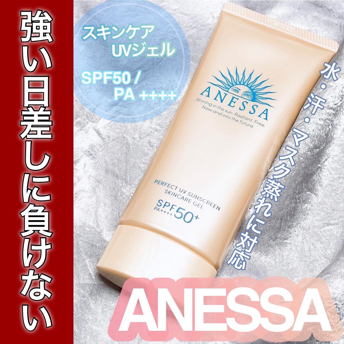 アネッサパーフェクトUVスキンケアジェル NA素肌を保水し続けてくれる、保湿成分が豊富に配合されているので、日焼け止め特有のキシキシ感がなく水水しい仕上がりがお気に入りです🤍\オートリペア技術/動きによってできた日焼け止め(UVブロック膜)の...