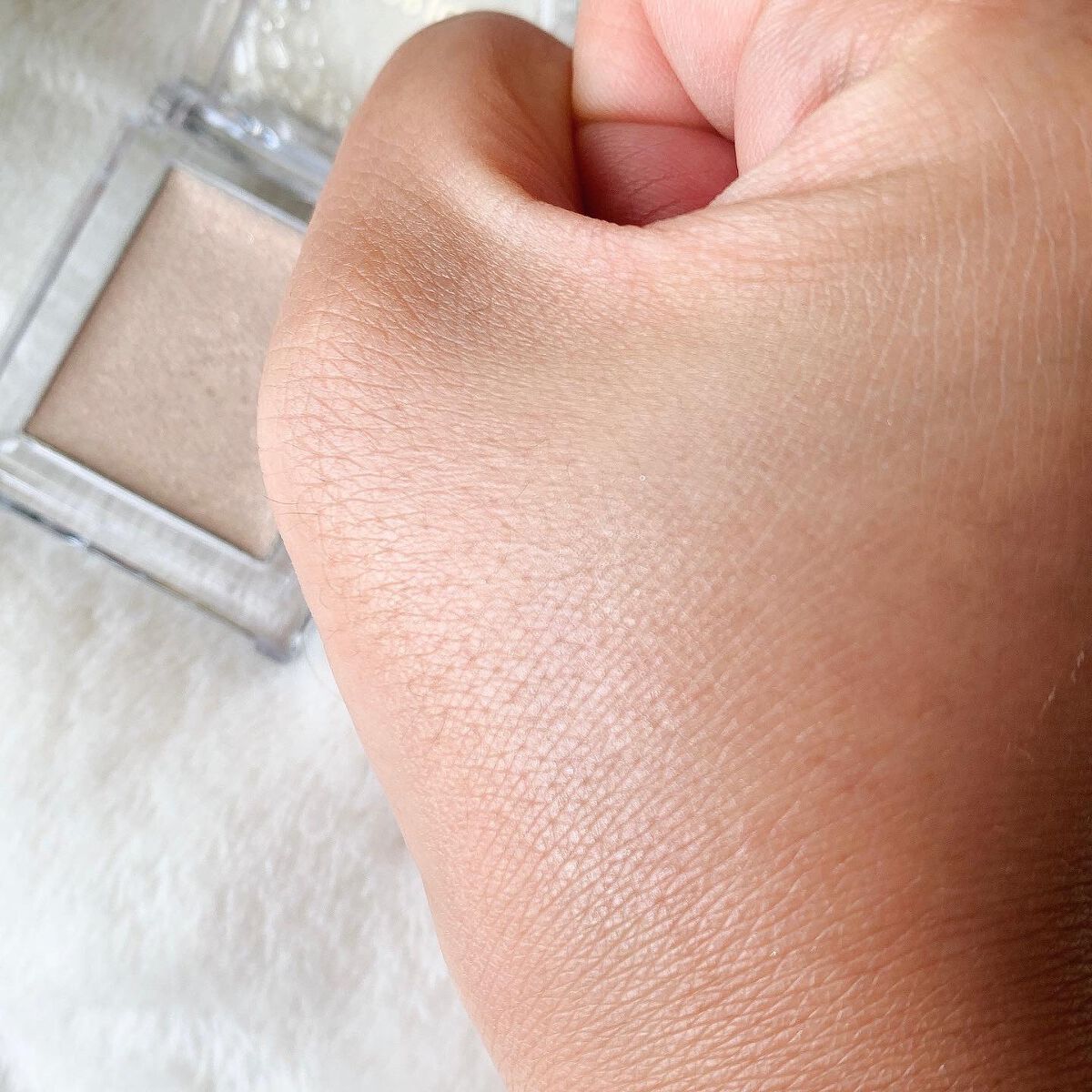 今までのハイライトよりピンクぽいカラー! ロゼベージュは少し濃い感じでしたが、こちらは白っぽいので、濃くかんじません! オーロラミントは白っぽい感じで、肌につけると、結構色白に見えるかんじでしたが、今回のはピンクがかっているので、肌の血色がよく見える💓 もちろん、今まで通りしっとりしているので、密着も良い✨