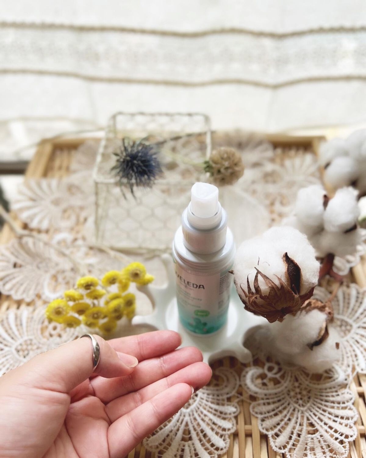 WELEDAウチワサボテンフェイシャルミスト大好きなweledaの製品💚フェイシャルミストです。肌に乾燥を感じた時、暑い時に、シューっと拭きかけるだけで肌が潤いリフレッシュできます。このグリーンのパッケージは、ウチワサボテンをイメージしている...
