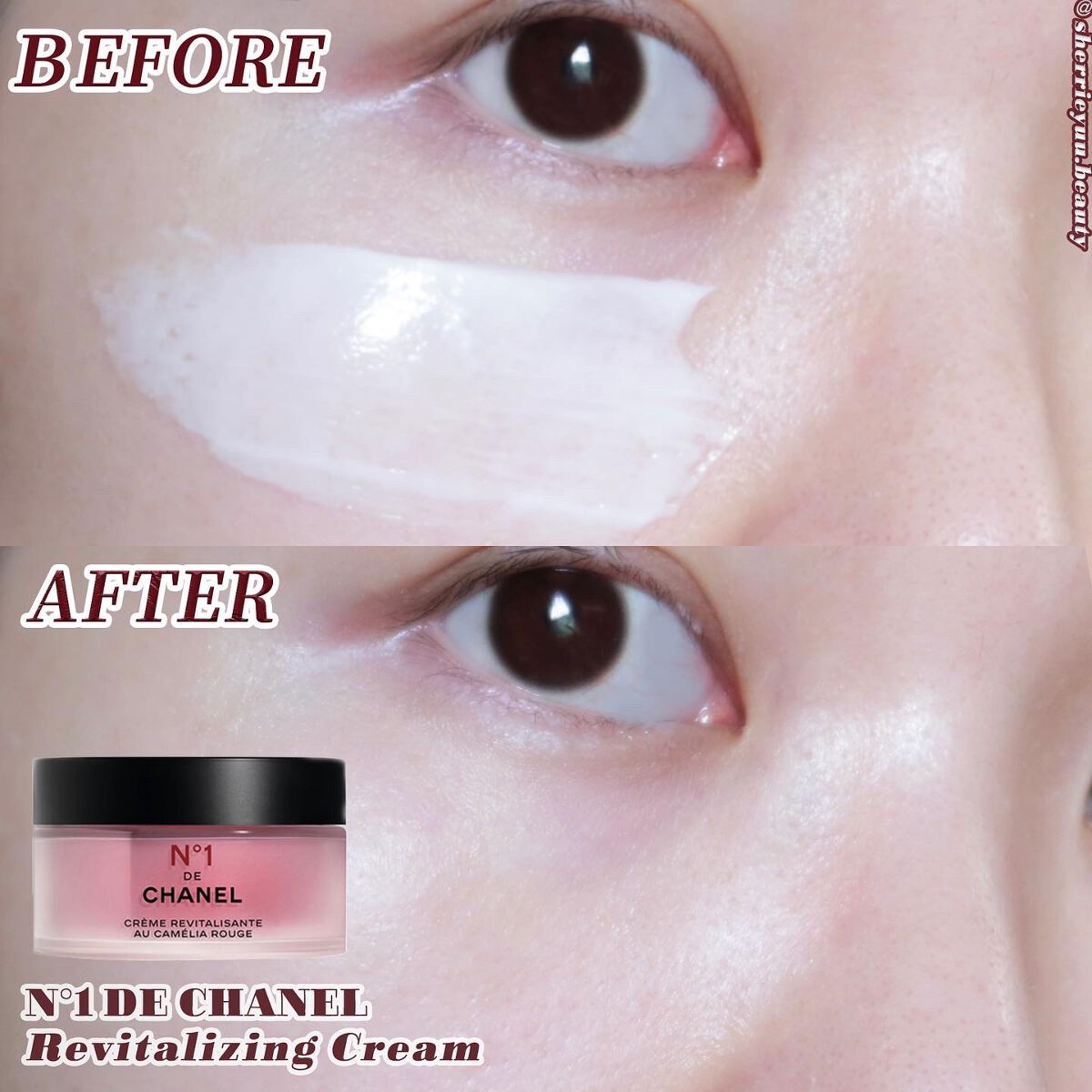 上品な良い香りがして好き💖 伸びが良くてベタつきがないクリーム 唯一無二の並外れた生命力を持つレッド カメリア。 シャネル化粧品研究所は、そのビューティ エナジーをN°1 ドゥ シャネルに注ぎ込みました。 自然由来成分95%、カメリア由来成分70%で構成され、ヴェルヴェットのようなテクスチャーで肌を心地よく包み込みます。