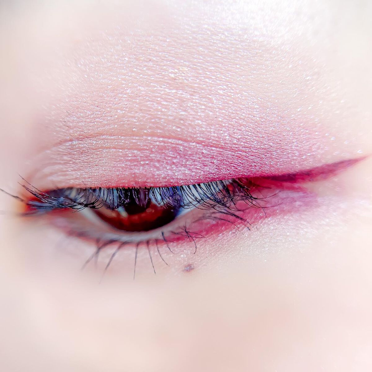 ピンクにグレージュも良いですね👌💗 今日は可愛らしい感じにしてみました💕 上下瞼黒目〜目頭側にラメを塗ってキラキラさせております🤩 目尻はマットのピンクを濃いめに重ねて💗 グレージュのアイライナーと相性◎