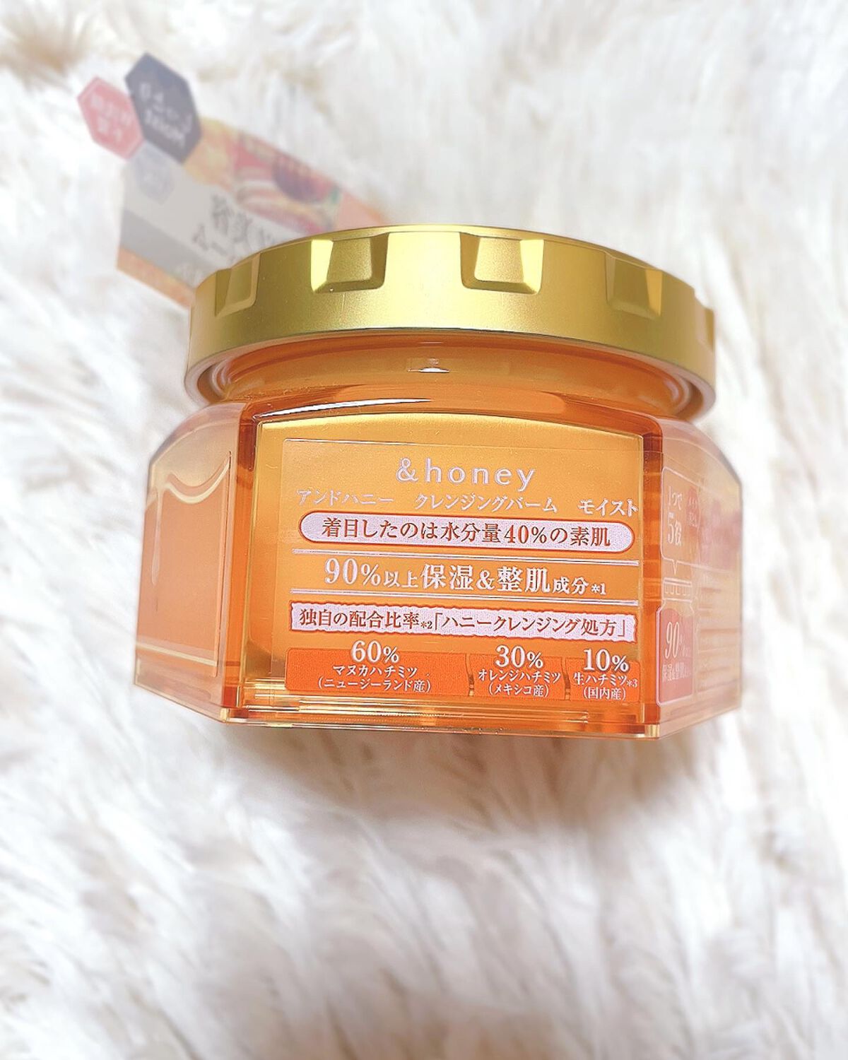 - 『&honey』から初のスキンケアシリーズ、クレンジングが誕生。 肌にうるおいを与えながら落とすハチミツ美容で、製品の90%以上をハチミツやアルガンオイル、オーガニックヒアルロン酸などの保湿&整肌成分で構成。 【クレンジングバーム モイスト】 ・ハニーモイスト成分*を配合 潤いを残しながらメイクをOFF.しっとり肌へ導きます。 ・1つで5役 メイク落とし・角質ケア・洗顔・マッサージ・保湿の5役 ・W洗顔不要。まつエクOK。パッチテスト済み。 ・無添加・フリー処方 合成着色料・パラベン・アルコール・動物実験フリー ・スイートハニーの香り *プロポリスエキス、ハチミツ(全て保湿)