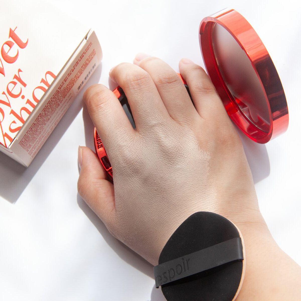 薄づきだけどしっかりカバーしてくれます 毛穴消えた! 高い密着力で綺麗なマット肌を作ってかれます パフも塗りやすいおにぎり型 エスポア ビーベルベット カバークッション ¥3,476(tax in)