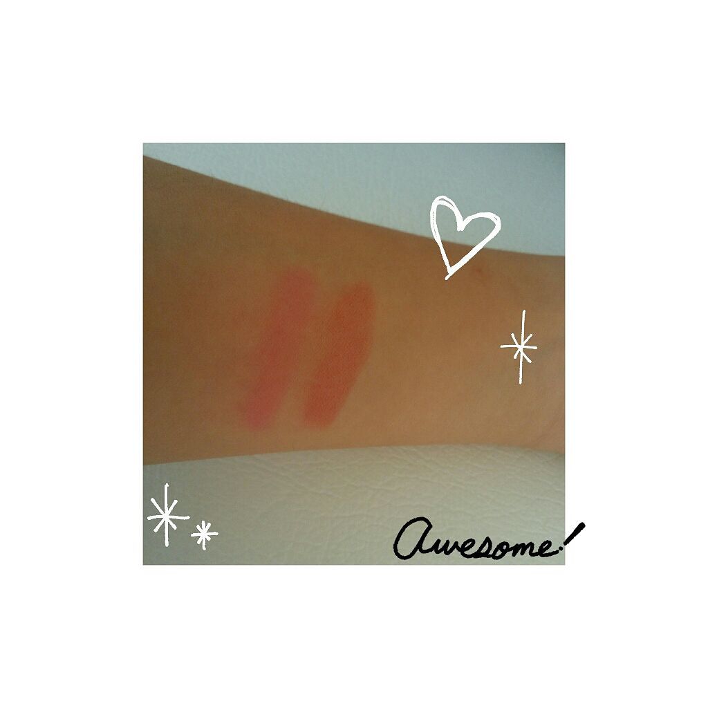 これは、私のお気に入りのリップです。2枚目の写真は腕に塗って見ました。結構発色もいいです。指でぼかして塗ったりして、グラデーションも作れます!3枚目は、1回ティッシュオフしました。ティントでは無いのですが、色持ち最高です。私は、1日3回塗り直...
