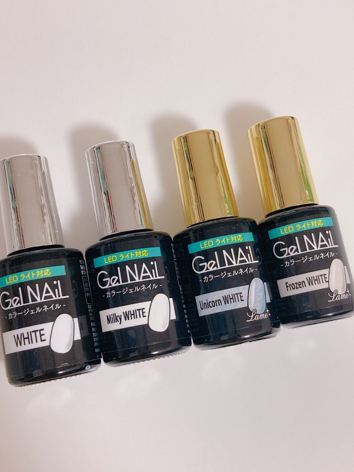 ちゅるん・透明感カラー! セリア ジェルネイル ¥110 細かいラメが入っているちゅるんなヌーディカラー 肌なじみが良いのでオシャレに見える👀✨️ 透明感あるホワイトってなかなかドンピシャなのが見つからなくてまさかのセリアで発見!