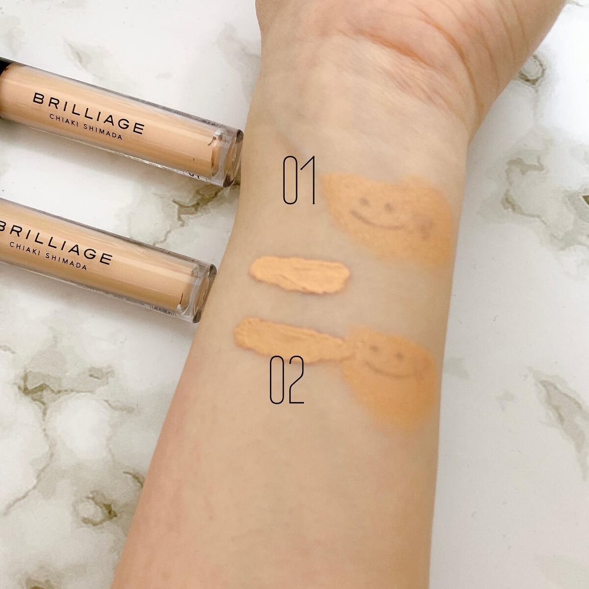 - <01 ライトオークル> 水、シクロペンタシロキサン、セチルPEG/PPG-10/1ジメチコン、グリセリン、BG、トリメチルシロキシケイ酸、ペンチレングリコール、リンゴ酸ジイソステアリル、ジイソステアリン酸ポリグリセリル-2、ジエチルヘキサン酸ネオペンチルグリコール、ジグリセリン、ベタイン、ポリメチルシルセスキオキサン、硫酸Mg、マイカ、ジメチコン、ソルビトール、フェノキシエタノール、ジフェニルシロキシフェニトリメチコン、(ジメチコン/ビニルジメチコン)クロスポリマー、トコフェロール、ヒアルロン酸Na、オリーブ果実油、ホホバ種子油、メドウフォーム油、パルミチン酸レチノール、コーン油、クダモノトケイソウ果実エキス、アロエベラ葉エキス、(+/−)酸化チタン、タルク、酸化鉄、水酸化Al、トリエトキシカプリリルシラン、ステアリン酸 <02 オークル> 水、シクロペンタシロキサン、セチルPEG/PPG-10/1ジメチコン、グリセリン、BG、トリメチルシロキシケイ酸、ペンチレングリコール、リンゴ酸ジイソステアリル、ジイソステアリン酸ポリグリセリル-2、ジエチルヘキサン酸ネオペンチルグリコール、ジグリセリン、ベタイン、ポリメチルシルセスキオキサン、硫酸Mg、マイカ、ジメチコン、ソルビトール、フェノキシエタノール、ジフェニルシロキシフェニルトリメチコン、(ジメチコン/ビニルジメチコン)クロスポリマー、トコフェロール、ヒアルロン酸Na、オリーブ果実油、ホホバ種子油、メドウフォーム油、パルミチン酸レチノール、コーン油、クダモノトケイソウ果実エキス、アロエベラ葉エキス、(+/−)酸化チタン、タルク、酸化鉄、水酸化Al、トリエトキシカプリリルシラン、ステアリン酸