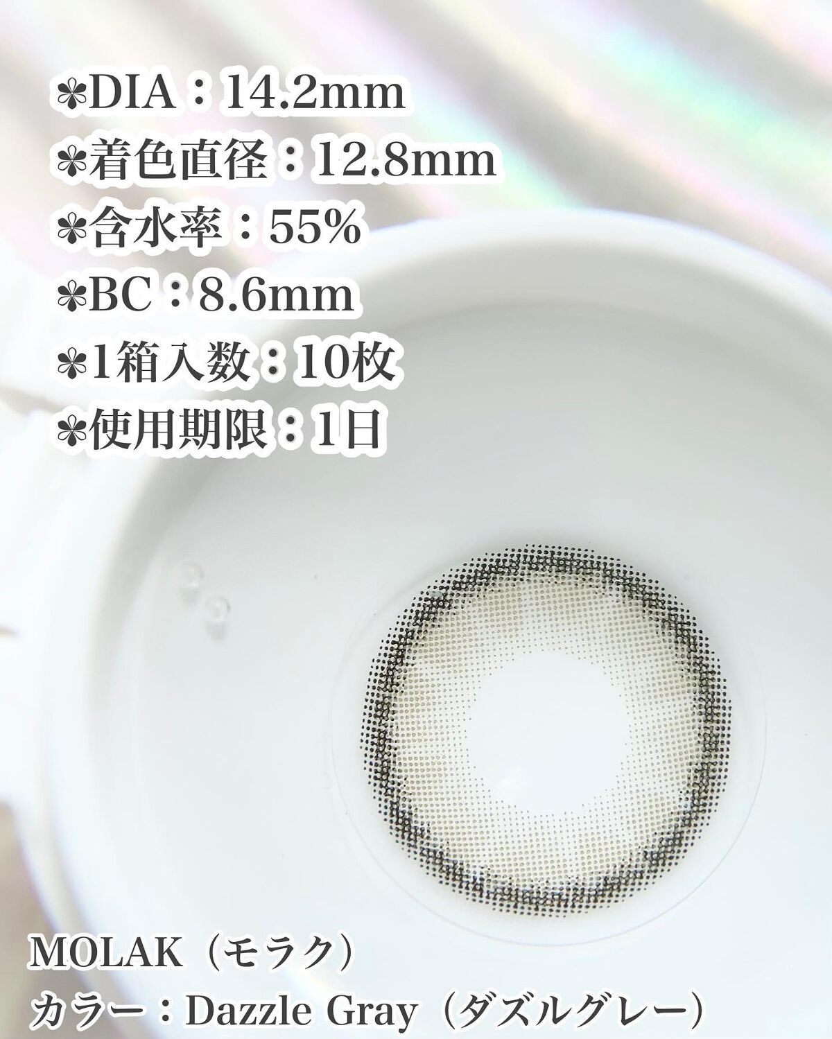 MOLAK TORIC (乱視用) ♥ Dollish brown DIA 14.2mm GDIA 13.2mm BC 8.6mm ちゅるんとブラウンの水光レンズ 私の愛用カラコンの一つでとにかく可愛いんだ、、、細ふちも好み!🌙*゚🤎 Dazzle gray DIA 14.2mm GDIA 13.2mm BC 8.6mm イエベでも使えるグレーカラコンとして以前紹介したことがあるこれ!青っぽくならないグレーで使いやすい✨ 乱視用カラコンが欲しい方は要チェック〜₍ꪔ̤̫₎₍ꪔ̤̫₎₍ꪔ̤̫₎