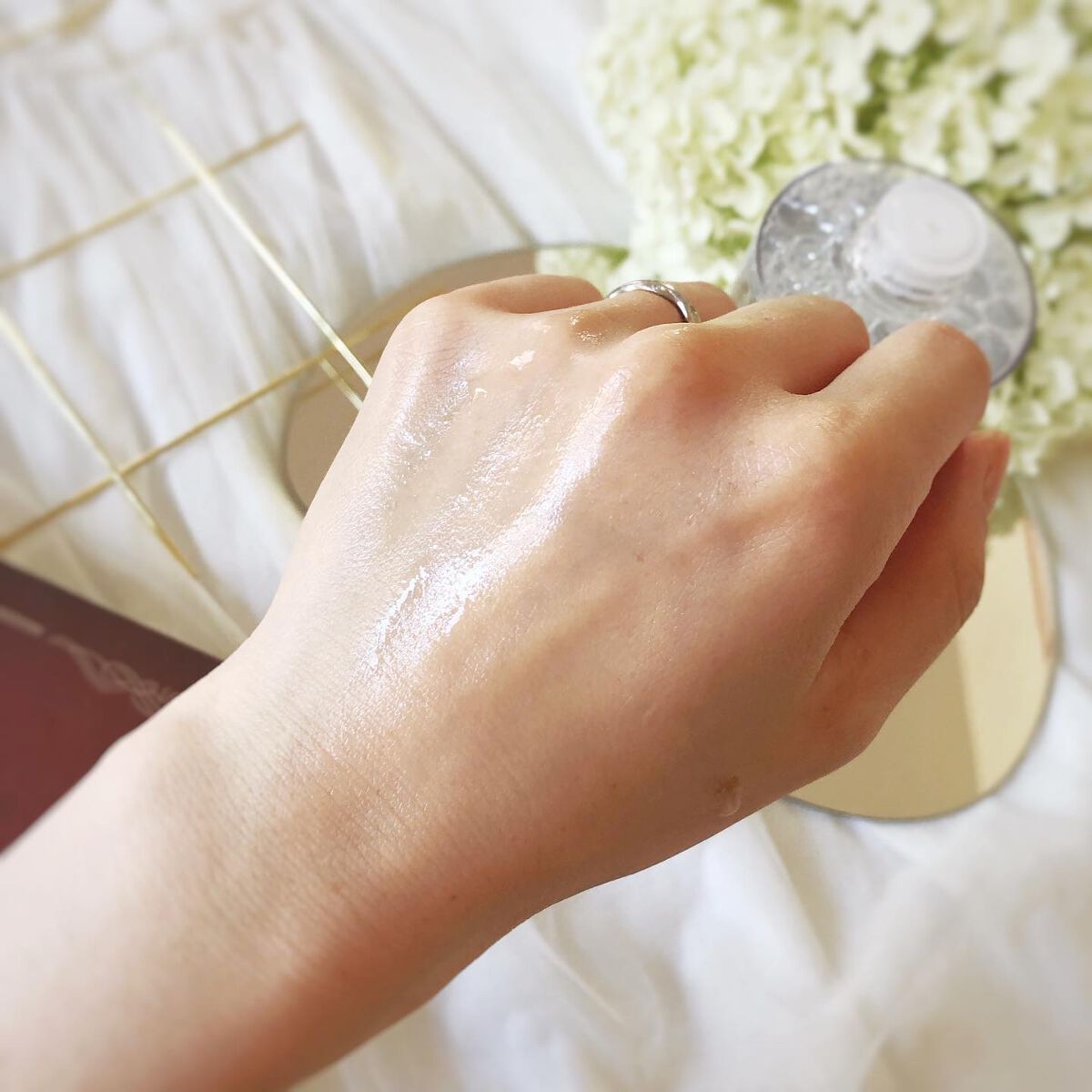 #さくら目元美容液 🌸みて〜!!👓とっても綺麗な美容液🥺開けた瞬間きれーい!!🥺💕って感動しました✨ピンクと金色の美容成分のカプセルが透明な美容液の中に入ってて、ポンプをプッシュするたびに潰れて出てくる💕つぶのカケラはすぐに肌に馴染んでなくな...