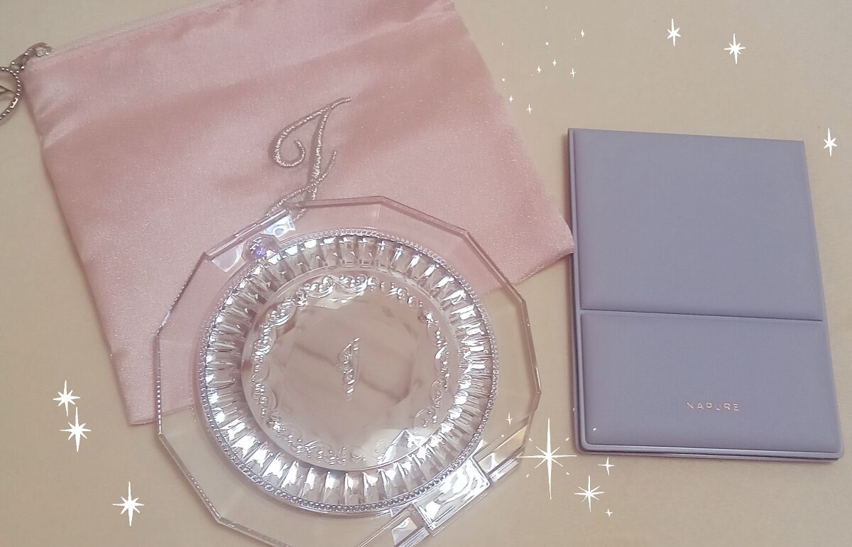 淡い桜色のリボンが愛らしいヴィンテージ調デザイン。スタンディングタイプの限定コンパクトミラー。 立てられて持ち運べる鏡は、割ってしまったりして1枚も持っていなかったので、旅行とかにも使えそう嬉しいです😍✨ 専用のピンクのポーチも付いています!! 中はパープルなのも可愛い💗