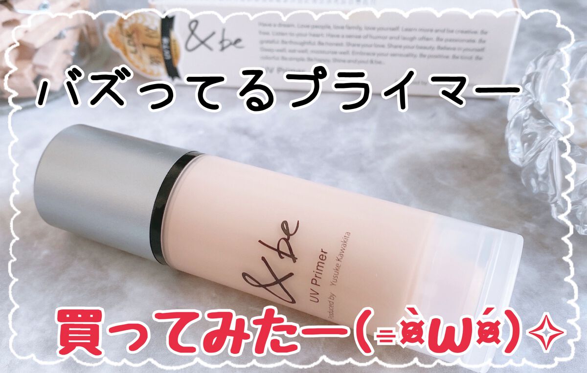 最近ノーファンデをはじめたお友達の肌がすごくキレイで。日焼け止めとか何使ってるのか聞いたらこれだよって教えてくれたので、さっそく私も使い始めました♡ &be(アンドビー)「UVプライマー」下地なんだけど、カバー力が高めでとにかくツヤがキレイ。肌にみずみずしい透明感を与える微細パールが高配合されてるんだそう。 SPF50+・PA++++と高い紫外線カット効果をノンケミカル処方で実現。鉱物油、紫外線吸収剤、石油系界面活性剤、タール系色素、合成香料不使用のフリー処方で、石鹸オフできるのも嬉しいポイント。