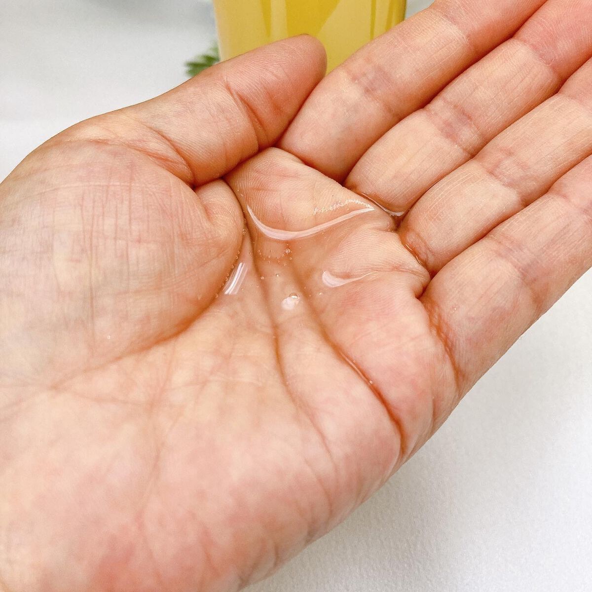 プッシュ式で適量が出しやすく、最後まで清潔に使えます。透明無色でややとろみのあるテクスチャーで無香料です。お肌につけてみるとスーッと馴染んで浸透力の高さがうかがえます。そして伸びがいいので1プッシュでお顔全体につけることができます。想像よりも...