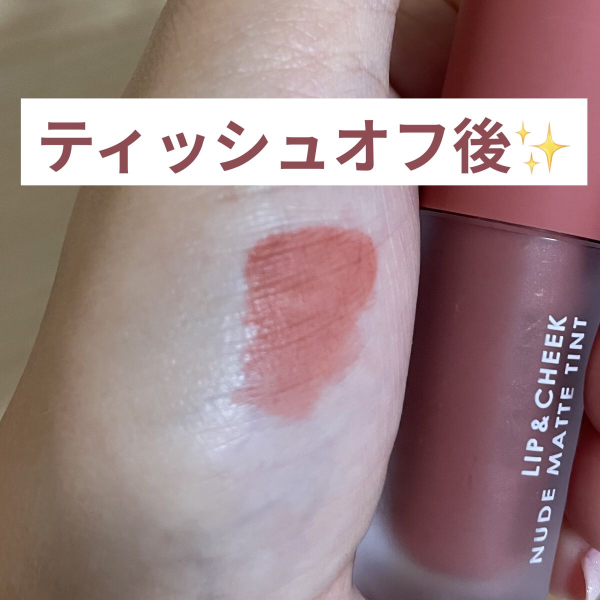 - 「リップアンドチーク ヌードマットティント」は、リップにもチークにも使える、2way仕様のマットな質感のティントカラー。 やわらかく軽いつけ心地で、唇にうるおいを与え、フレッシュな色味が長時間続きます。 多彩なカラーバリエーションで、顔色を引き立てます。 ツバキ花エキス配合。ベリーの香りつき。