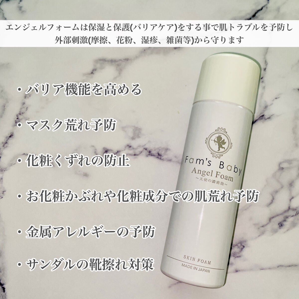 fam'sbaby(ファムズベビー)モニターさせて頂きました!ファムズベビー◉エンジェルフォームデリケートな肌にも使え、肌にバリアをつくる新感覚のスキンケアです。皮膚表面に保護バリアをつくり、肌を痛める多くの原因を遮断して肌を保護します!使っ...