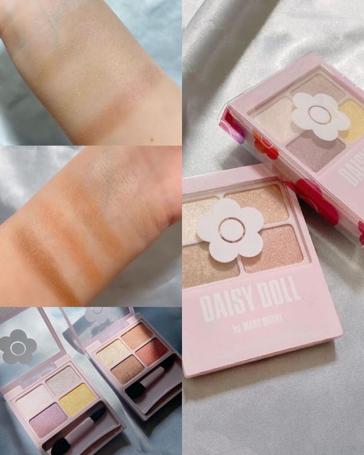 DAISYDOLLbyMARYQUANTデイジードールアイカラーパレット【使った商品】BR-06キャラメルナッツ【商品の特徴】¥1,430円(税込)ラメ系4色パレット3種の美容エモリエントオイル配合重ねても濁らない透け感発色【使用感】黄み系の...
