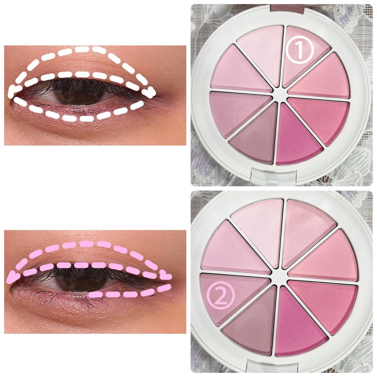 #今日のメイク今日の#デイリーメイク今日はピンクパレット🎨秋だからくすみ感強めのピンクを使ってメイクしてみた👀②のカラーがしっかりくすみピンクなのに目元が暗くなりにくいから使いやすい◎締め色を目頭に入れる時は二重幅ぐらいまでであまり広げずに入...