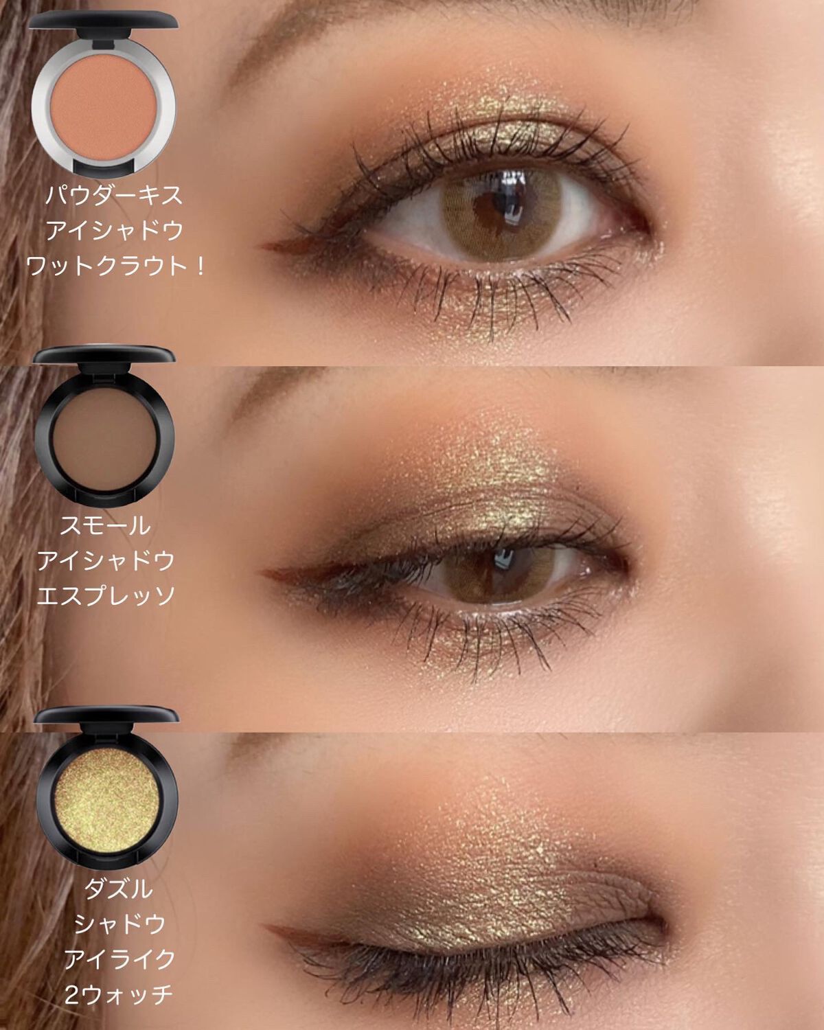 M・A・Cシングルアイシャドウで強めアイメイク❤️ 赤みブラウン×偏光ゴールドラメ✨もう大好き🙏🏼💕 ダズルシャドウのアイライク2ウォッチは本当にお気に入りだし、なにより可愛いからおすすめ😍 ダズルシャドウはどれもMACらしさがあって好き🤤その中でもこの色が多分1番好き🤤💕