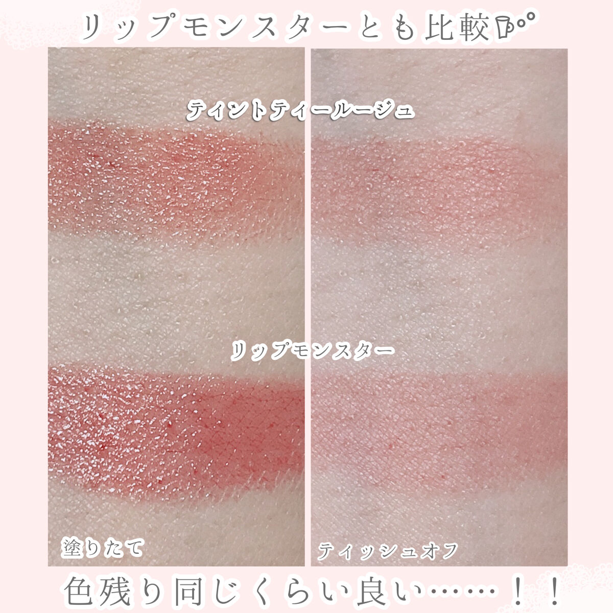 - 数量限定 馴染みのよいティーカラーが染まるようにフィット アフタヌーンティーまで色づきつづく ● つけたての色がそのまま染まるようにフィットする、染めないティント(染料レス)。 ● カサつきがちな唇にもなめらかにのび広がり自然なツヤのある仕上がり。 ● ヒアルロン酸(保湿)配合。 6時間色持ちデータ取得済み※ ※当社調べ。効果には個人差があります。