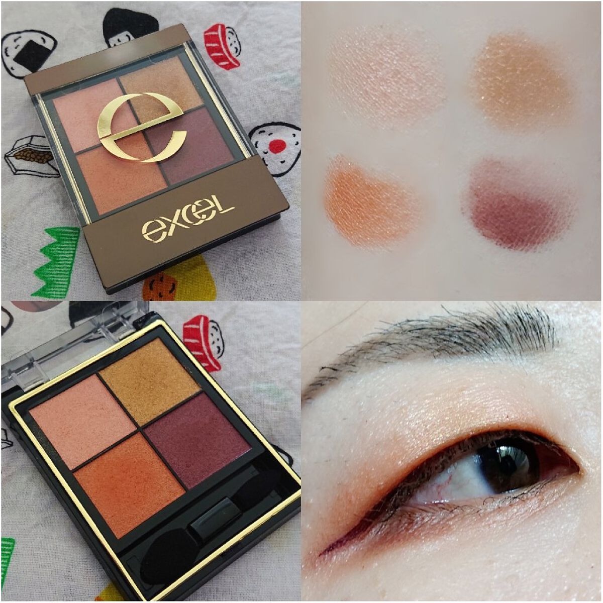- 1.重ねてもくすまないクリアな発色。ナチュラルに溶け合う絶妙4カラー。 ツヤタイプ(左上・左下カラー):アイホール全体にぼかしたり、目尻へのポイント使いも。 ラメタイプ(右上カラー):アイホール中心や下まぶたにきらめきのアクセント。 マットタイプ(右下カラー):単色で陰影を付けたり、ツヤタイプと重ねてニュアンスをプラス。 2.うっとりするほどリッチな質感で粉飛びしないのに、軽いタッチで伸びて重ねやすいテクスチャー。 3.スクワラン(保湿)配合で目元の乾燥を防ぎます。 [PERFORMANCE] 色と質感の重ね着を楽しむ、ファッション感覚アイシャドウパレット [DESIGN] ・まぶたにひっかからない、なめらかな上質チップ ・薄型コンパクトだからポーチの中でかさばらない [QUALITY] 1.重ねてもくすまないクリアな発色 ナチュラルに溶け合う絶妙4カラー 2.パールの重ね技でまぶたに極上のツヤ感 微細多色 カラーパール 銀コーティング ガラスパール* excel GOLD-MIX処方(金パール配合)* (*右上のシャイニーカラーのみ) 3.うっとりするほどリッチな質感で粉飛び知らず!なのに、軽いタッチで伸びて重ねやすい 4.スクワラン(保湿)配合で目元の乾燥を防ぐ