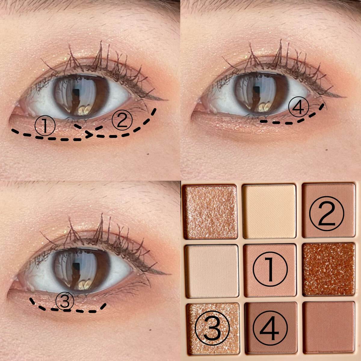 URGLAMBLOOMINGEYECOLORPALETTEを使用してアイメイク✄✄遠心顔っぽく見せたくて、ベースカラーを薄めにして目尻の締め色を濃いめに入れてみました!前は結構決まったパターンのメイクをしてましたが、最近は色々組み合わせや塗る...