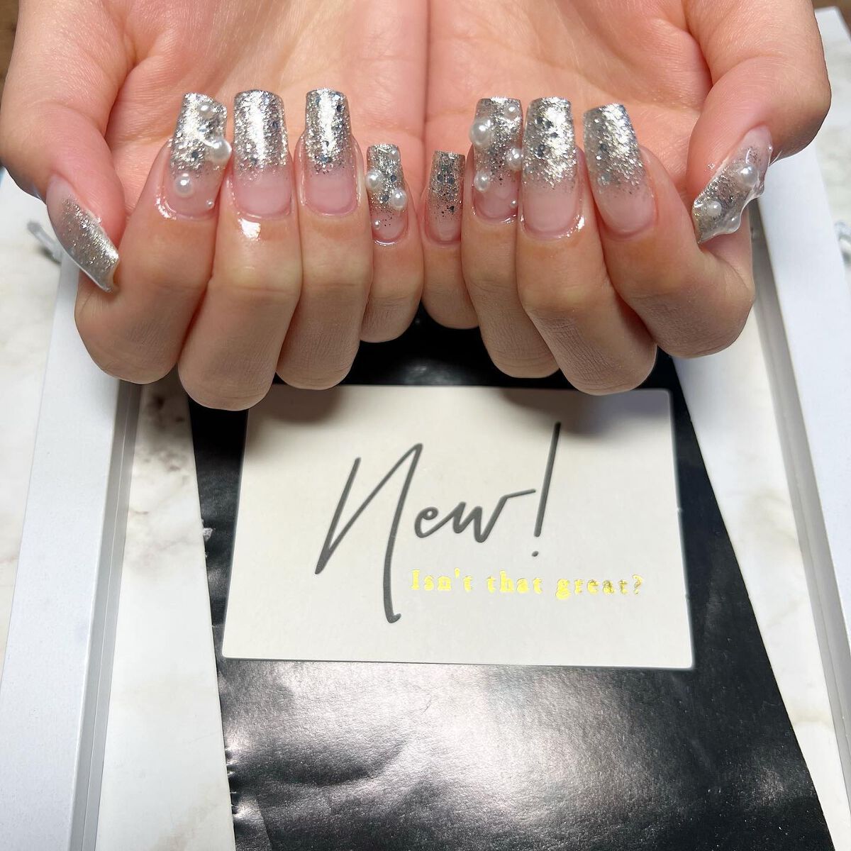スカルプネイルのネイルデザイン - #シルバーネイル #silver