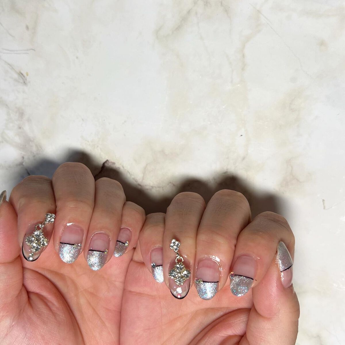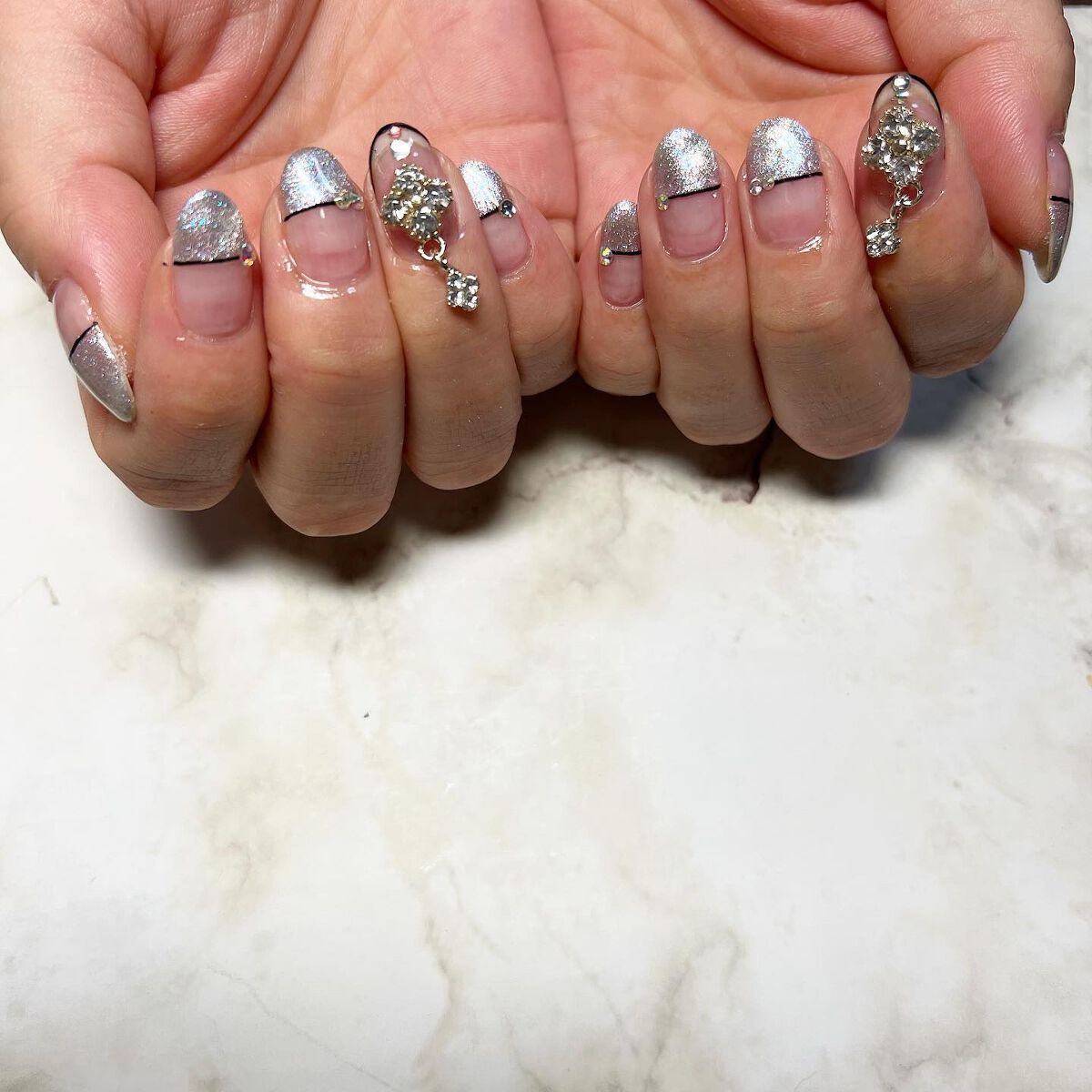 こちらおまかせでさせていただいたネイルです💅💅💅💅看板メニューのおまかせコースです❤️❤️❤️✼••┈┈••✼••┈┈••✼••┈┈••✼••┈┈••✼#glitter#silvernails#glitternails#unicorn#ネイル...