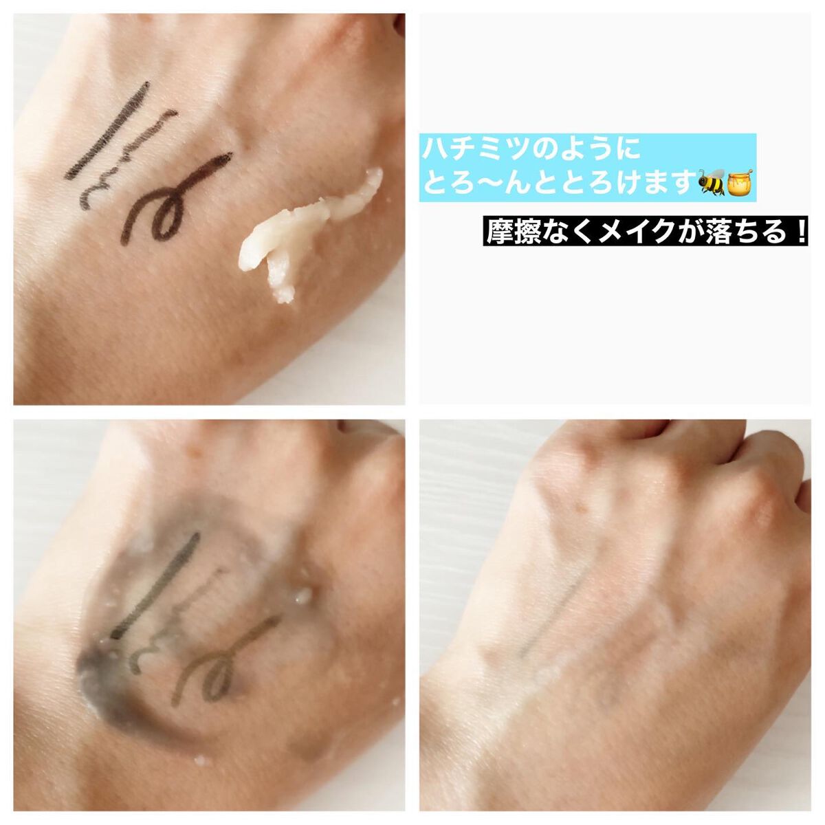 マヌカハニークレンジングバーム🍯.付属のスパチュラでバームを肌にのせて、肌温にとろりととろけるバームは、メイクの上でくるくるするとスルスルメイクと馴染む❤︎.マヌカハニーのおかげか、私は洗い上がりのしっとり感が感じられて満足🫶.抗菌成分を含む...