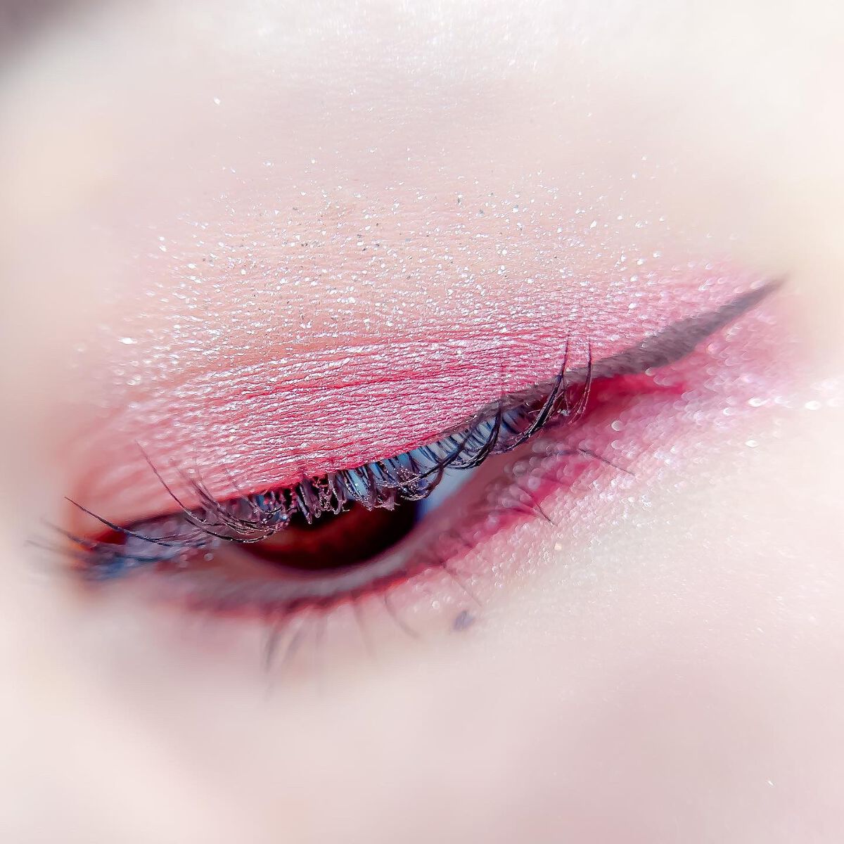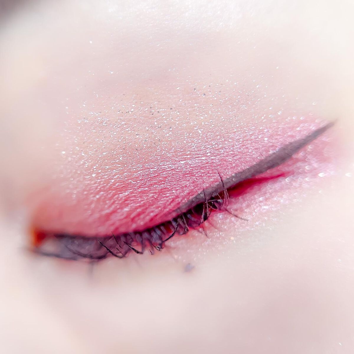 ピンクにグレージュも良いですね👌💗 今日は可愛らしい感じにしてみました💕 上下瞼黒目〜目頭側にラメを塗ってキラキラさせております🤩 目尻はマットのピンクを濃いめに重ねて💗 グレージュのアイライナーと相性◎