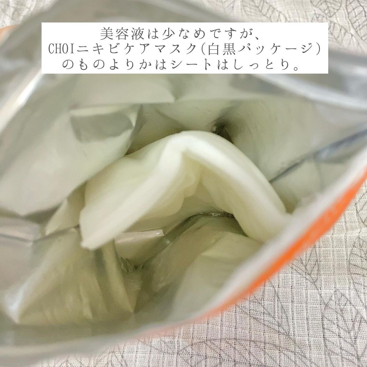 ※2023年使用品パック・商品名肌美精CHOIマスク 薬用ニキビケア 薬用乾燥肌あれケア・値段定価770円(ニキビ648円で購入)(乾燥605円で購入)・購入場所マツキヨ(ニキビ)ツルハ(乾燥)・評価★★☆☆☆どっちも液さらさら、さっぱり系段...
