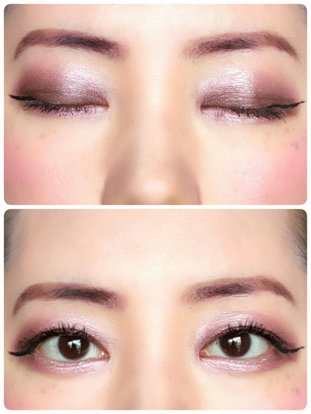 アイシャドウパレットは、URGLAM UR GLAMBLOOMING EYE COLOR PALETTE 02を、使用しました。 マスカラは、MAYBELLINE NEW YORK コロッサルボリュームエクスプレスを、まつ毛全体にまんべんなく塗ります。 リップは、wet 'n' wild MegaLast Lip Colorを、唇全体にまんべんなく塗ります。