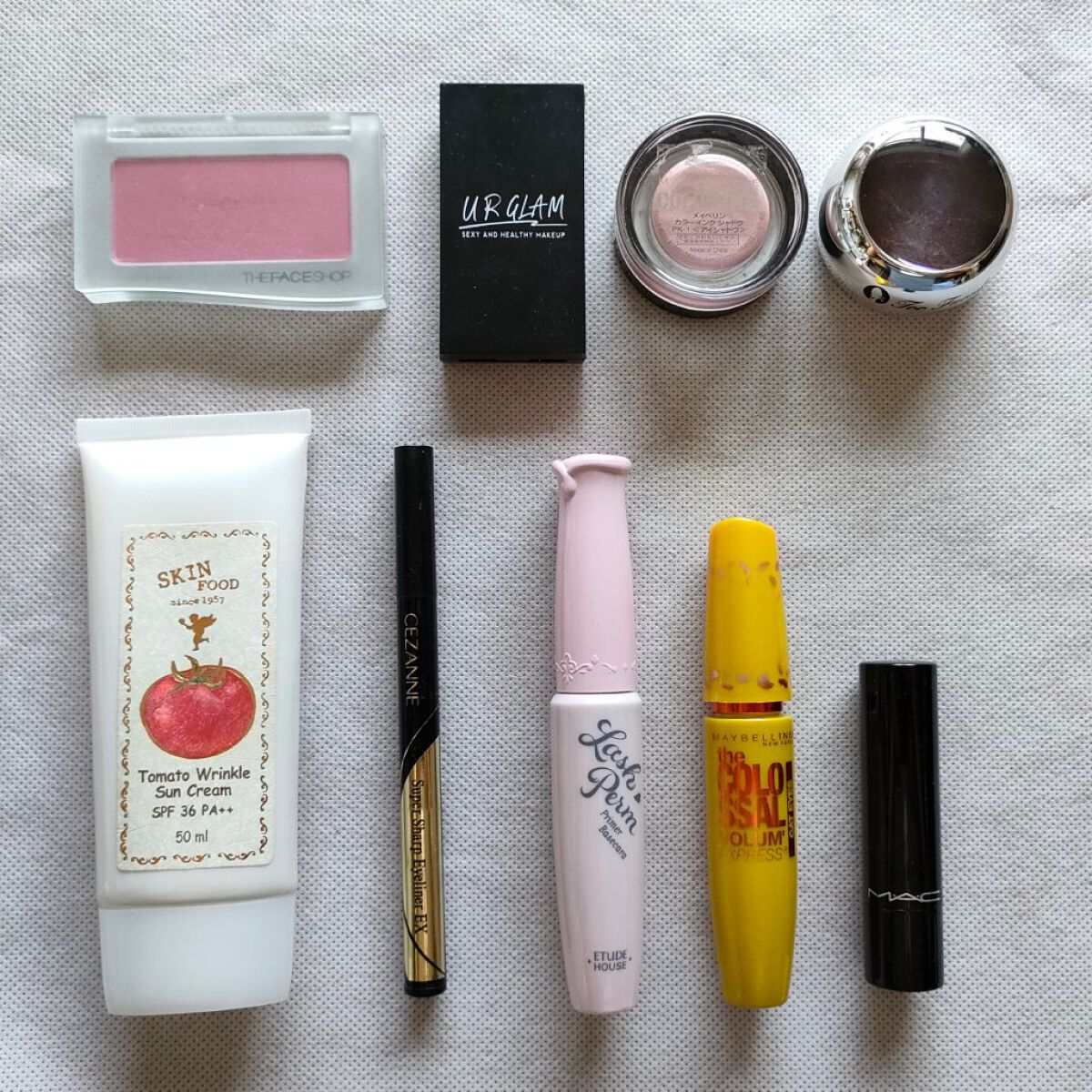 アリィー ニュアンスチェンジUV ジェル RSを、顔全体にまんべんなく塗ります。 RMK RMK ジェルクリーミィファンデーション 103を、顔全体にまんべんなく塗ります。 ジョンソンベビー ジョンソン ベビーパウダーを、顔全体にまんべんなく軽くはたきます。 THE BODY SHOP bronze shade warm glowを、両頬に塗ります。 KATE リフレクトミラーアイズ BR-1の締め色を、眉毛全体にまんべんなく塗ります。 URGLAM UR GLAMBLOOMING EYE COLOR PALETTE 01を、使用しました。 ちふれ リキッド アイライナー 筆ペンタイプ BK30 ブラックを、塗ります。 CEZANNE エアリーカールマスカラを、まつ毛全体にまんべんなく塗ります。 MAYBELLINE NEW YORK コロッサルボリュームエクスプレスを、まつ毛全体にまんべんなく塗ります。 MAYBELLINE NEW YORK SPステイ マットインク 135を、唇全体にまんべんなく塗ります。