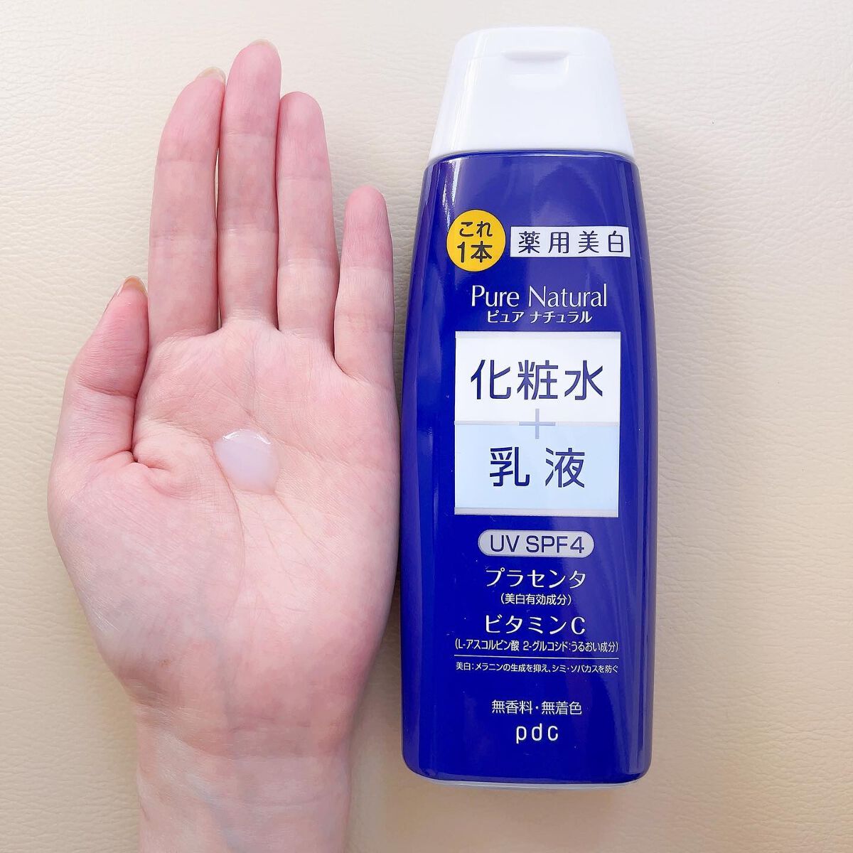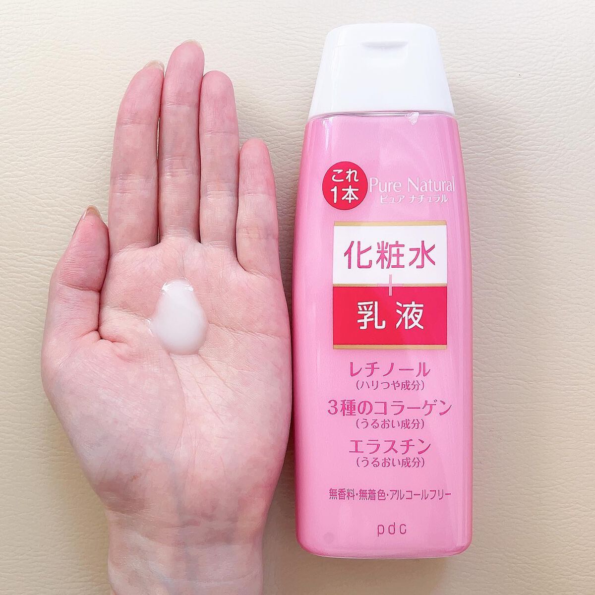 pdcピュアナチュラルエッセンスローションUVスキンケアをするのが面倒くさい時にとりあえずこれを使用してます😂❣️化粧水と乳液これひとつで乾燥対策にも✨乾燥による敏感肌にも🆗テクスチャーはとろっとしたみずみずしい乳液タイプ。肌馴染みがよくスー...