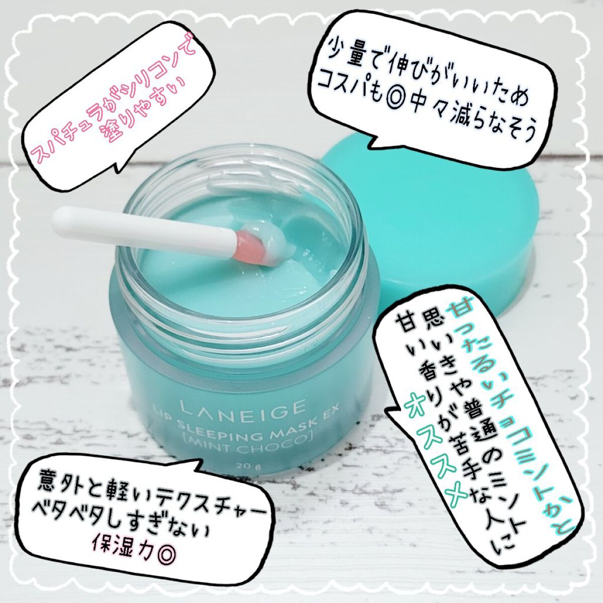 - 寝ている間にケアしてふっくらぷるぷるにうるおった唇へ。 2015年の初代発売以降、世界で2秒に1個売れている*¹LANEIGE大ヒットシリーズ *¹ 2024年グローバル販売実績 1.角質にアプローチするBerryFruitComplex (ベリーフルーツコンプレックス)*²が、 寝ている間に気になる乾燥や角質にうるおいを与え、つやのあるふっくらとうるおった唇に仕上げます。 *²ザクロ果実エキス、ブドウ果実エキス、ラズベリー果実エキス 2.ココナッツオイル(ヤシ油)を配合で、うるおいをあたえ睡眠中の乾燥を防ぎます。 3.今夜はどんな気分?5つのフレーバーから選べるワクワク感。 ■テクスチャー:やさしく馴染むなめらかなバームタイプ ■アレルギーテスト済み*³ *³全ての方にアレルギーが起こらないということではありません。 ■使用方法 寝る前に唇にたっぷり塗り、そのままお休みください。 翌朝、軽くティッシュオフします。付属のスパチュラで塗ることで、より唇の角質に馴染みやすくなります。 日中のリップトリートメントにも使用できます。