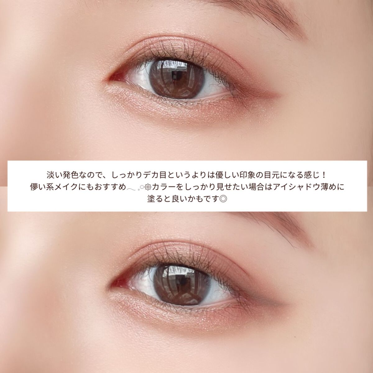 なめらかな書き心地で発色も良く、ブレずに描きやすい! パケに結構重さがあるので、安定してラインを引きやすいのが特徴です👌 めちゃくちゃ可愛かった〜!🥺 名前の通りミルクを加えたような、まろやかで優しい色味のブラウンです。 しっかり描いてもアイラインがっつり引いてます感が出ないので、ナチュラルに仕上げたい方にオススメです! 透け感があるので重たい印象にならなくて、ふんわり優しい雰囲気のアイメイクになります🕊𓈒𓏸◌ 発色が淡くて肌なじみが良いのではみ出してもわかりにくくて、適当にササッと引いても割と綺麗に仕上がる😂 ラブライナーは色素沈着しにくい顔料タイプなので、落とす時もストレスフリーでお気に入りです♪ 今回試しに眉毛もこのアイライナーで描いてみたんですが、発色淡めのなので意外と馴染んだ気がする…😂 個人的に結構お気に入りのアイライナー(兼アイブロウペンシル?笑)になりそう😳笑