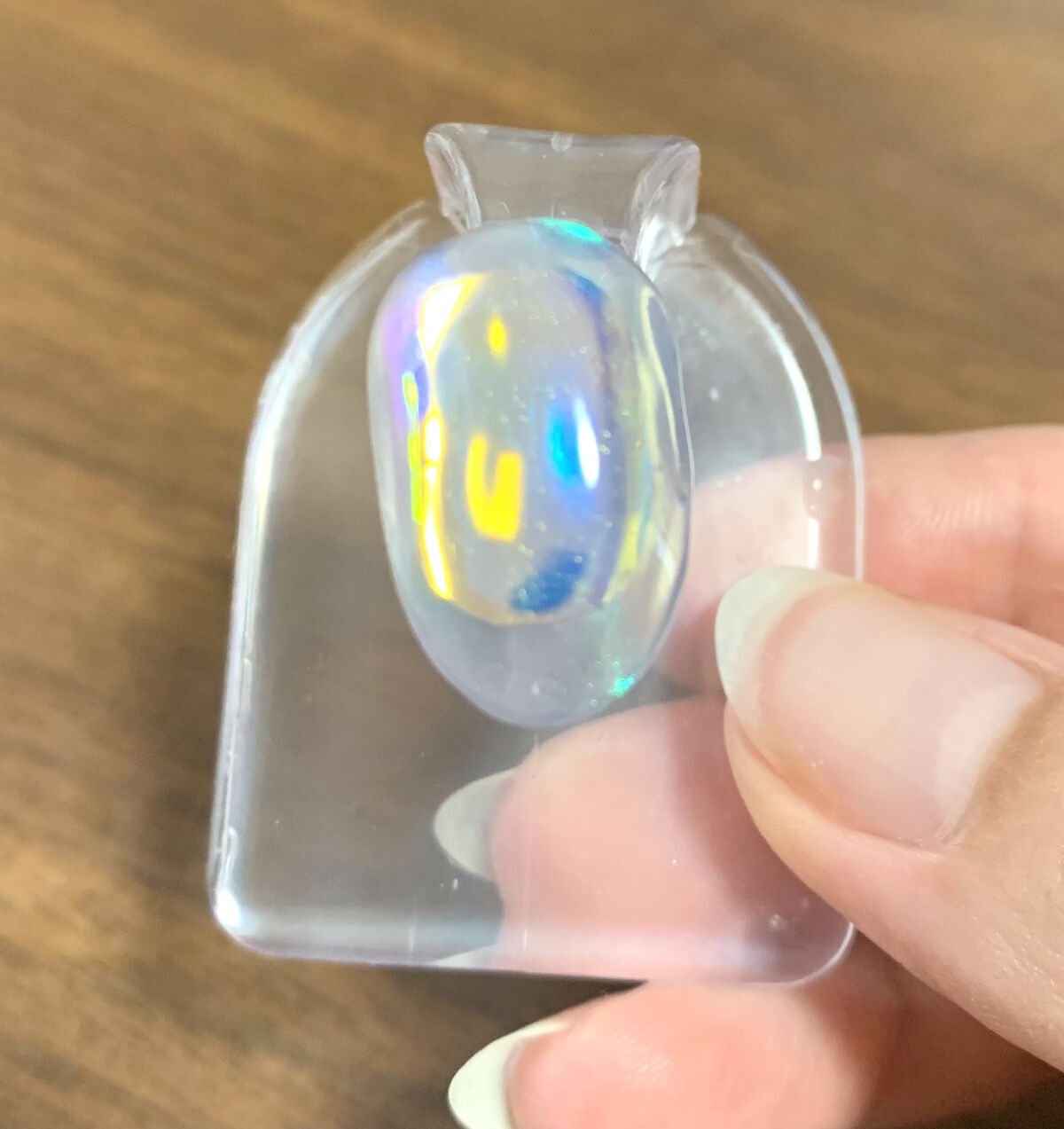 ノンワイプトップ塗ってから擦るの面倒だし厚みを出したくないので、カラージェル硬化してから、エタノールで拭き取り、パウダー擦り付けました。 可愛くて、何度も指先見ちゃいます。太陽☀️の外で見てもキラキラ反射して可愛い💅✨ 光の当たり方により、薄グリーンっぽいオーロラ感〜オレンジ感〜ピンク感 のある輝き。画像で見るより実際は、もっとオーロラ感もありとにかく可愛いです。