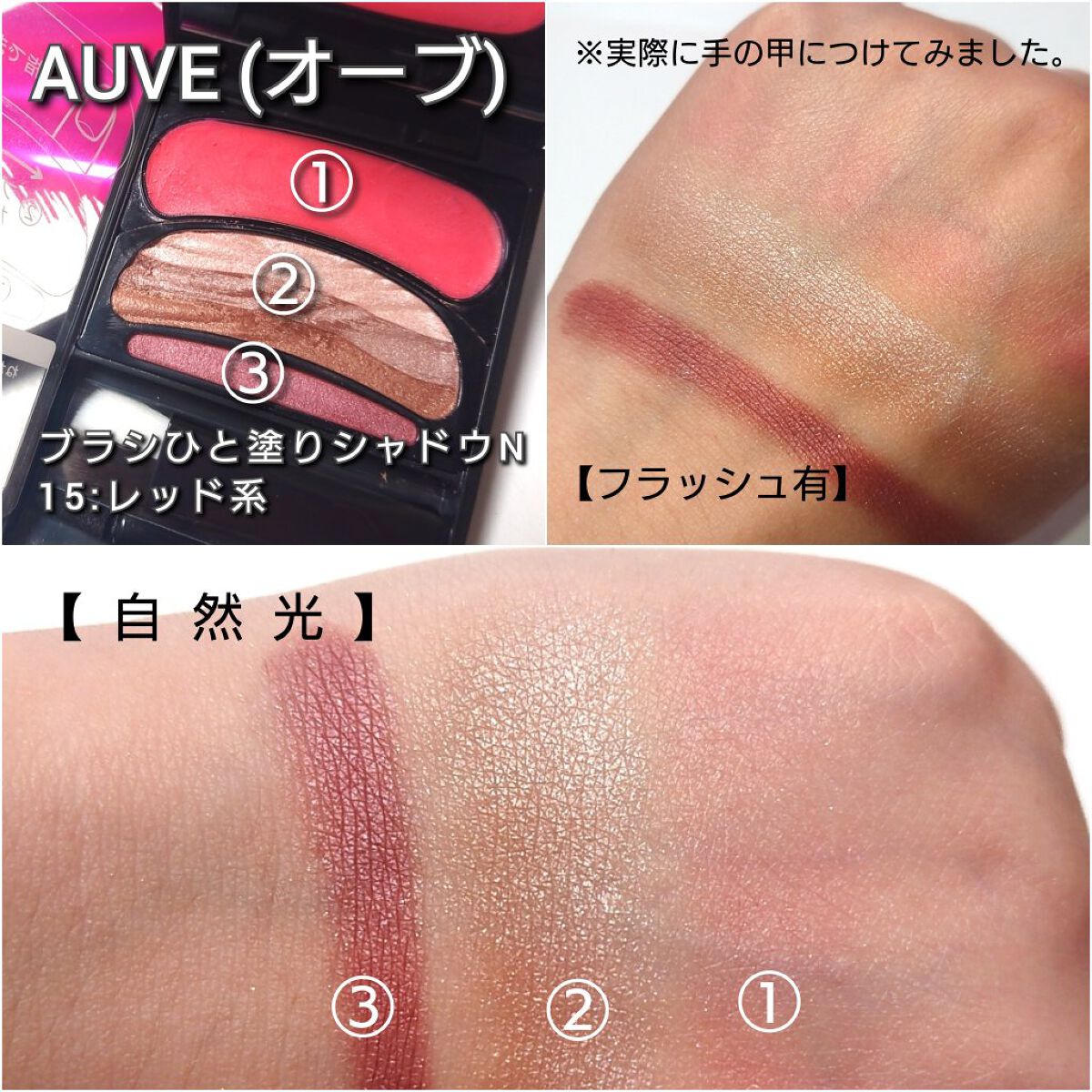 - ブラシひと塗りで3色グラデーションが決まるアイシャドウ。 うるおい効果もあるまぶたベースが3色シャドウの密着と発色を高め、メイクののりが良くない日もしっとり質感のグラデーションに仕上がります。 ●色の境目がきれいになじむウエーブ設計*を新採用 ●保湿成分配合[ヒアルロン酸] ●塗る色を上下間違いにくい白黒ブラシつき※鏡つき。(拡大鏡ではありません。) *色と色の間に混色ができる設計