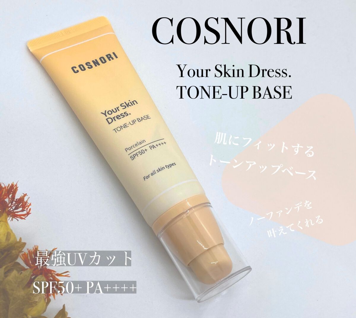 COSNORI“ユアースキンドレストーンアップベース”毛穴や赤みなどをナチュラルにカバーしてくれるユアースキンドレストーンアップベース✨薄いベージュの色付きで付け心地は軽い☝🏻指でつけるよりパフでとんとんすると凄いきれいに仕上がるよ!少量でよ...