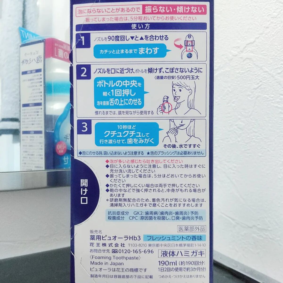 【ピュオーラ泡ハミガキフレッシュミント】by花王口の中の菌、どこに多いと思いますか?実は舌!!舌には、歯や歯周ポケットの倍くらい菌がいるのだそうです👀寝る前に入念に歯を磨いて、マウスウォッシュもしていますが、朝はなんだか嫌な匂いがして舌も磨い...