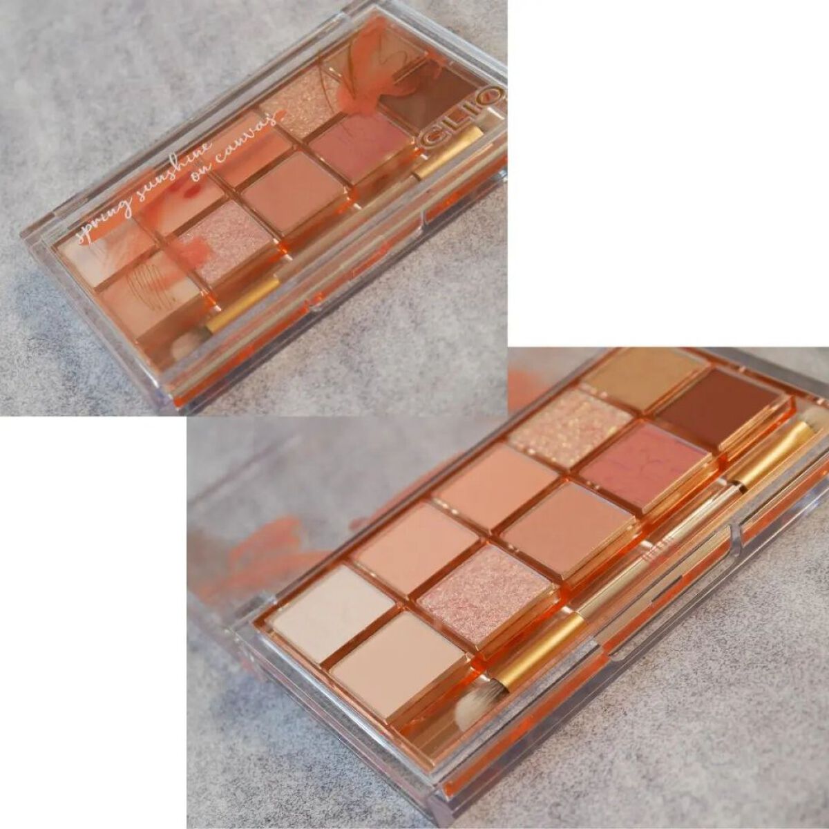 ブルベ冬おすすめ 高彩度高発色のマット、シマー、グリッターなど様々なテクスチャー 発色良いのにぼかしやすくて 単色で使ってもかわいい😍 このクリアのパッケージがかわいくて メイクするときテンション上がる🤭