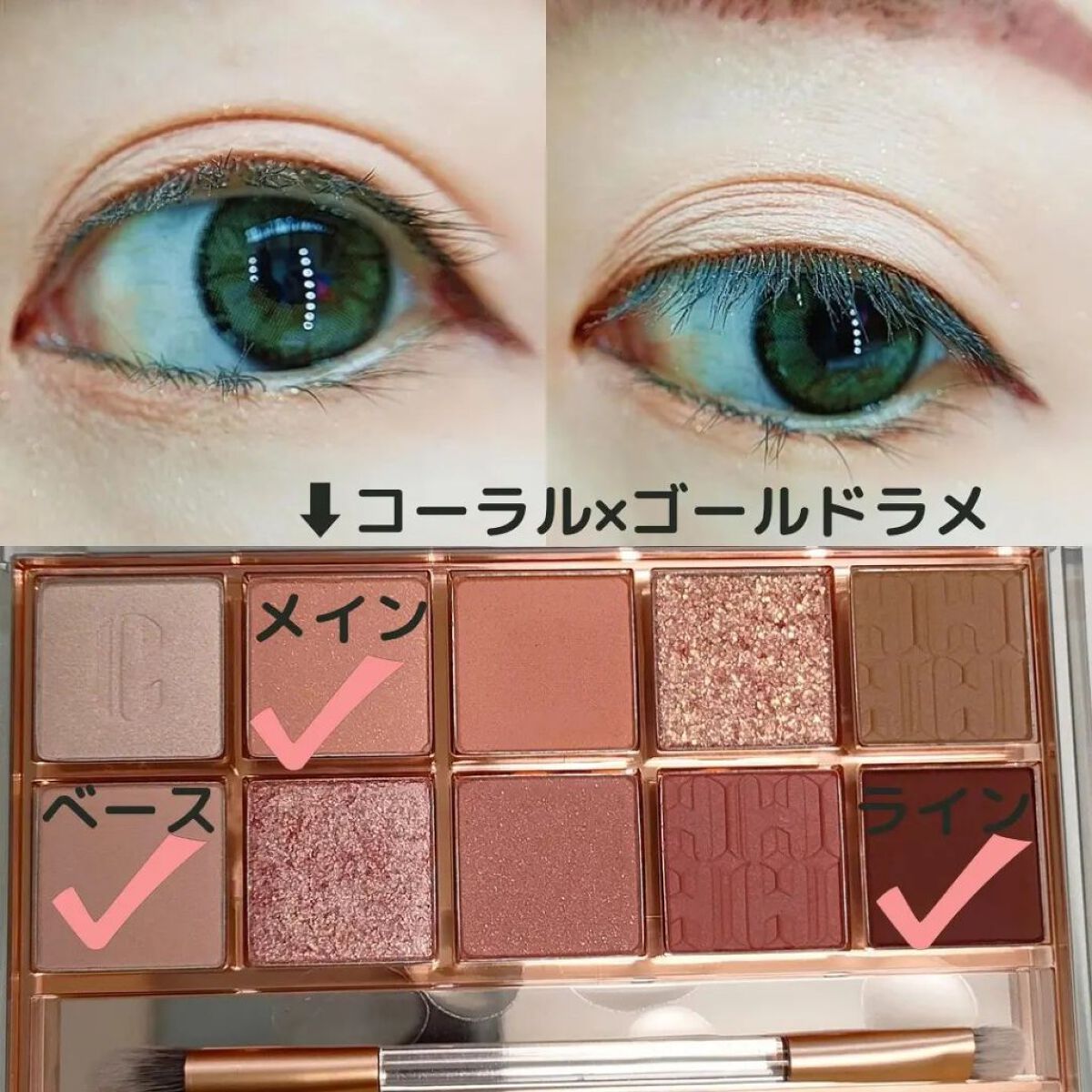 ☑韓国インフルエンサーのこだわりカラー ☑しっとり密着持ちがいい ☑ラメが派手すぎない ☑ふんわりブラウンが小悪魔的な可愛さにしてくれて盛れる♡ かなり明るいカラーなので、肌が白めでないと発色しない可能性がある。白めでない場合は、同じシリーズのもう少し濃いめのパレットをおすすめします! 藤田ニコルさんのYoutubeでも盛れるメイクでこのパレットを使用していました!ベースカラーと上の明るい色のラメを使っていたと思います!ナチュラルメイクやモテメイク、小悪魔的なメイクに向いていると思います!