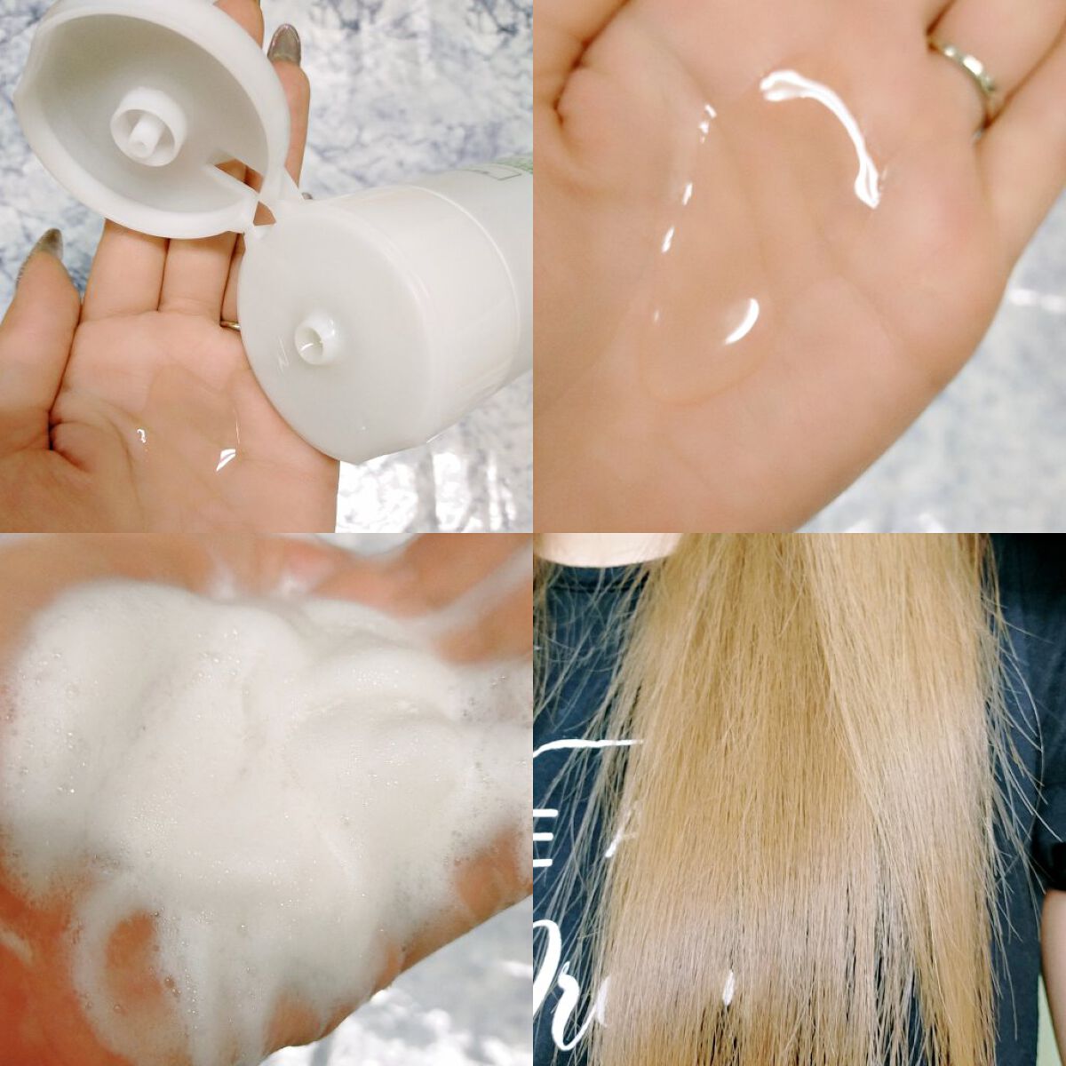 ノンシリコンなのに驚くほど泡立ちが良くて、髪がきしむことなくスルスルと指通りが滑らか。 パンテノールをたっぷり配合しているから、根元からふんわりとしたボリューム感が生まれ、髪全体がふわっと仕上がるところ。 9種の天然由来成分が、髪と頭皮にたっぷりのうるおいを与えてくれるので、毛先までしなやかに整います。