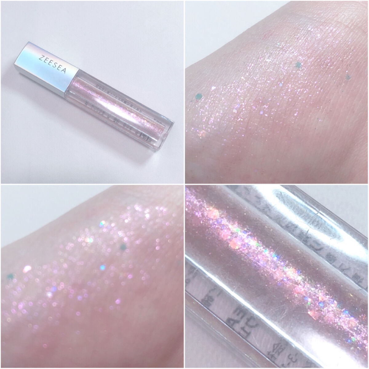 ZEESEAダイヤモンドシリーズ星空リキッドアイシャドウ05夕日の森イエローゴールド系かと思ってましたがグリーンよりの色ピタッと密着し色飛びやラメ落ちもしにくいです涙袋にいれるよりアイホールに、ぽんぽん塗りの方が使いやすかった今の時期だとボル...
