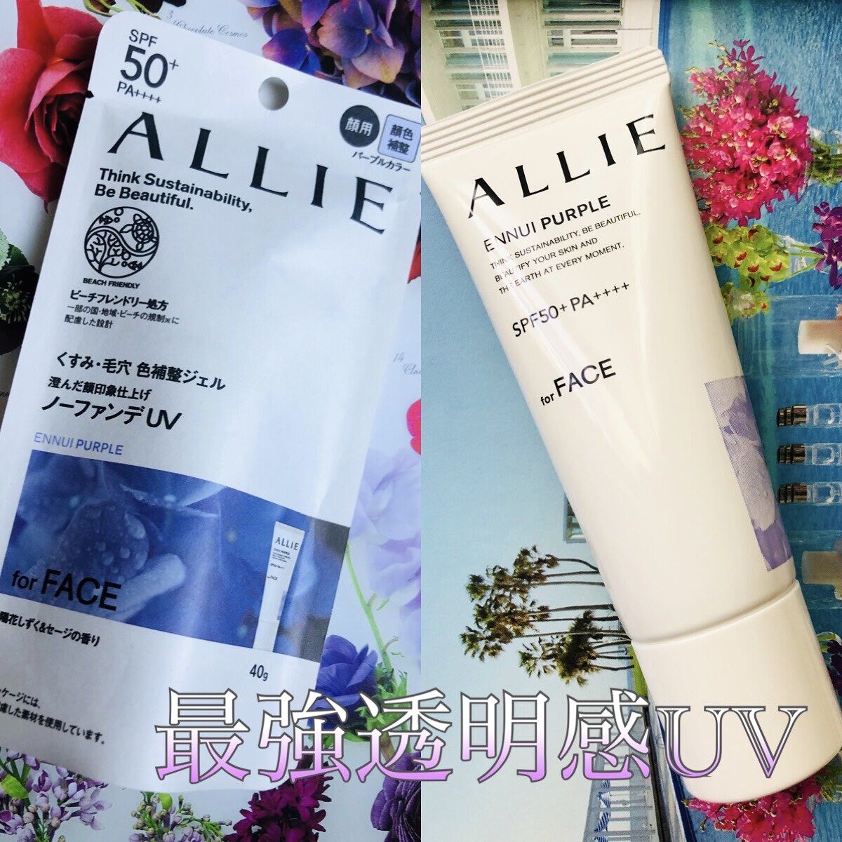 - 世界を想う 美しさつづく*1 日やけ止め おでかけも、マスクを外す機会も増える毎日に。 一部の国・地域・ビーチの規制に配慮した設計のビーチフレンドリー処方。 これ 1 本で、UV カット&顔色補整効果でクマ・くすみ・色ムラまでカバー! テカりにくく、くずれにくいノーファンデ UV*2 【ENNUI PURPLE】 くすみや毛穴をカバー 儚げな透明感のある顔印象続く 澄んだ気分を誘う 紫陽花しずく&セージの香り 【SUNNY APRICOT】 クマや毛穴をカバー いきいきとした血色感のある顔印象つづく 思わず出かけたくなる アプリコット&金木犀の香り 【SHERR BEIGE】 色ムラや毛穴をカバー 均一で抜け感のある顔印象つづく 自然で飾らない シトラスウッディ&パチュリの香り ●一部の国・地域・ビーチの規制に配慮した設計の「ビーチフレンドリー処方」 ●SPF50+・PA++++ ●汗・水 こすれに強く落ちにくい フリクションプルーフ・スーパーウォータープルーフ ●ベタつきにくい感触がつづく ●テカりにくくキレイな肌仕上がりがつづく ●環境に配慮した素材を使用したパッケージ採用 ●美容液成分(保湿)ヒアルロン酸Na配合 ●顔用 ●普段のメイククレンジングで落とせる ●マスク・タオル等につきにくい ●化粧下地効果 *1 スキンケア効果またはメイクアップ効果による肌仕上がりのこと *2 ファンデーション未使用時でも、自然なベースメイクが仕上がる日やけ止めのこと *3 チリ・ほこり・PM2.5・花粉等すべての微粒子汚れの付着を防ぐわけではありません 01:ENNUI PURPLE パープル 02:SUNNY APRICOT アプリコットピンク 03:SHEER BEIGE ミルキーベージュ