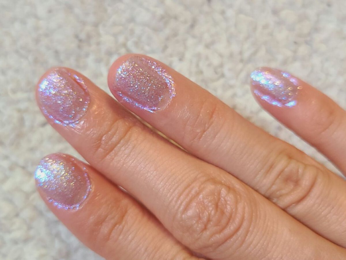 偏光ラメで上品アメジストネイル🔮🪻 不器用でも出来るネイルシリーズ♡ 薄く重ねていくだけで時間もかからず上品な手元に✨️ 特にN52マーメイドスケールが偏光ラメだから、角度によって輝きが変わってつやんと感もプラスされてすごく綺麗🥰