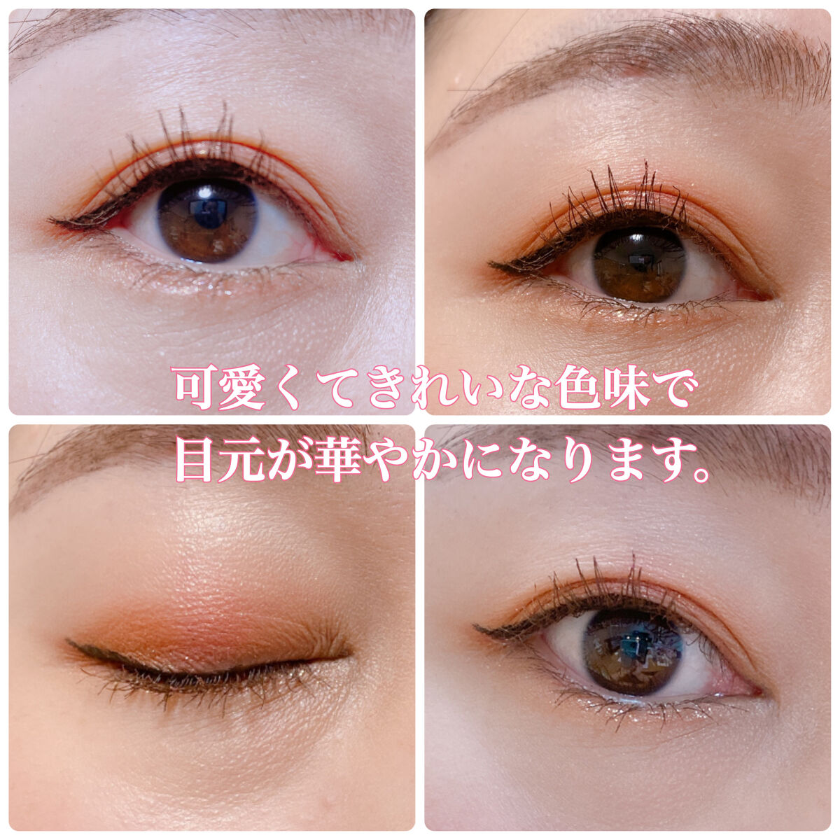 本日のアイシャドウ♡#Visee#パノラマデザインアイパレットOR-6チェリーオレンジこの、チェリーオレンジが可愛い❤️オレンジだけどオレンジすぎなく赤みもありブルベさんにも使いやすい!!!ラメ感に品があり、大人感なのも良き✨使いやすくて、お...