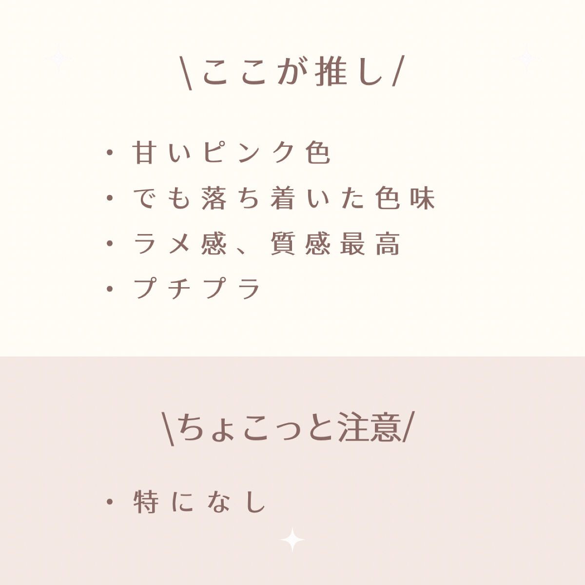 買って後悔しない。 きらきら感とくすみピンクベージュが良すぎて 目元に載せた瞬間、このアイシャドウの虜になります🥀 普通にまぶたにのせるのもいいけれど、下まぶたにつけるとよりアンニュイな雰囲気に💭 ぜひ手に取ってみて下さい❕