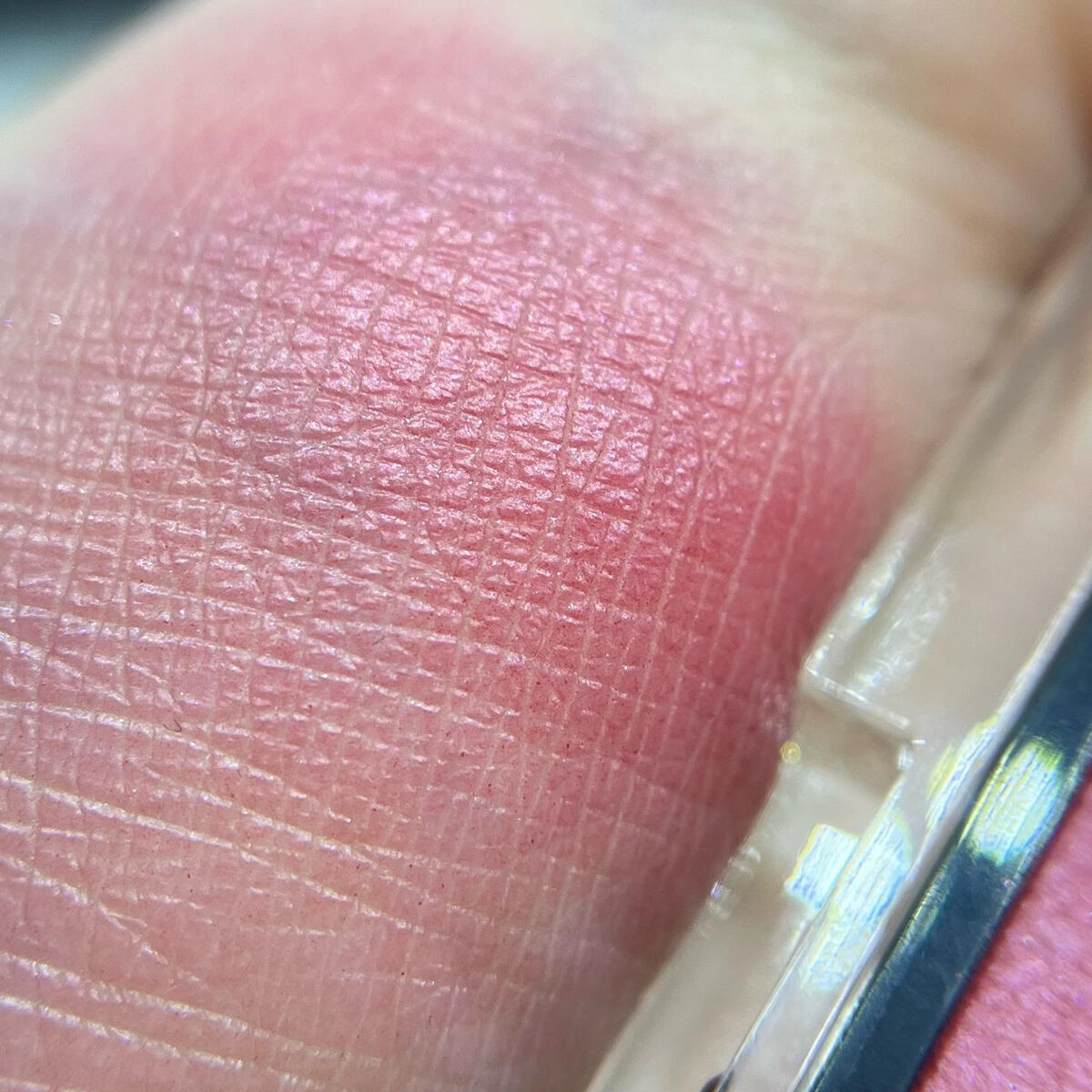 チークポップ持ってる人なら分かると思いますが、パール感は強め。 指で濃いめにつけてるので実際ブラシにとってつけるともっと薄めでモーヴカラー。 白っぽいパールなので見た目より明るめの発色。