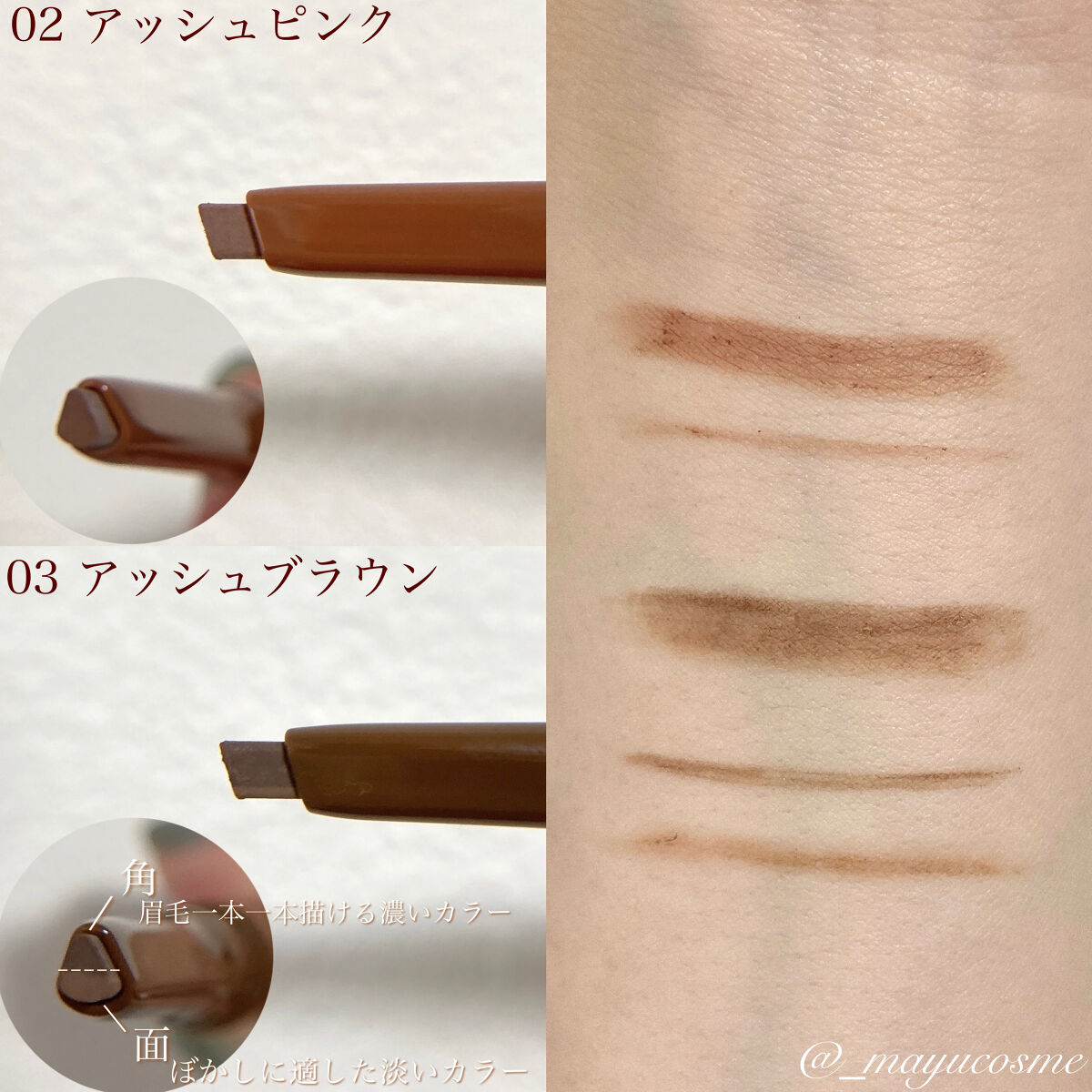 | アイブロウランキング第180位 | ミルクチョコレートのように柔らかいブラウンにほんのりピンクみがプラスされたカラー🍫発色、色持ち共に◎ | 詳細を見る | |